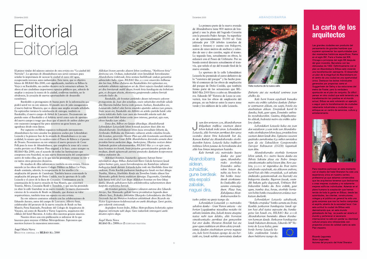 RICARDO AND VÍCTOR LEGORRETA'S LETTER TO BILBAO RIA 2000 MAGAZINE, DECEMBER 2003. | NEWS | Legorreta Arquitectos