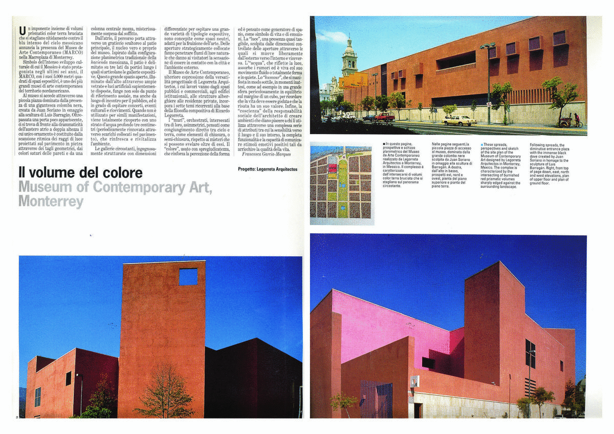 MARCO MUSEUM IN ITALIAN MAGAZINE L ARCA, MARCH 1995 | NEWS | Legorreta Arquitectos