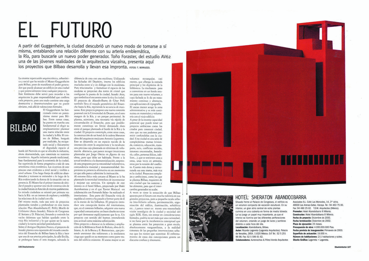 SHERATON ABANDO IBARRA HOTEL IN DISEÑO INTERIOR MAGAZINE, OCTOBER 2001.