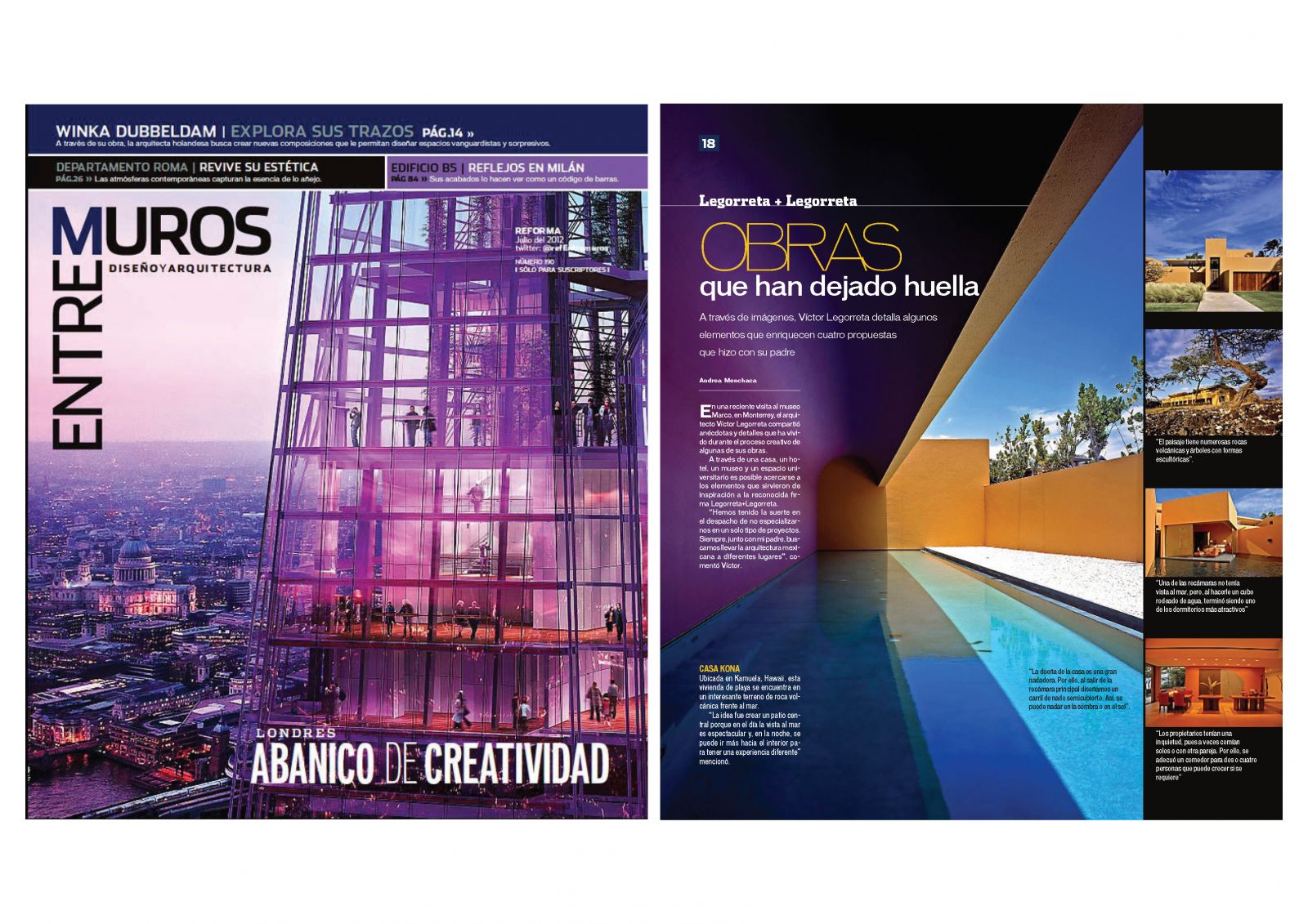 PUBLICATION AT ENTREMUROS SECTION AT REFORMA NEWSPAPER, JULY 3RD, 2012. | NEWS | Legorreta Arquitectos