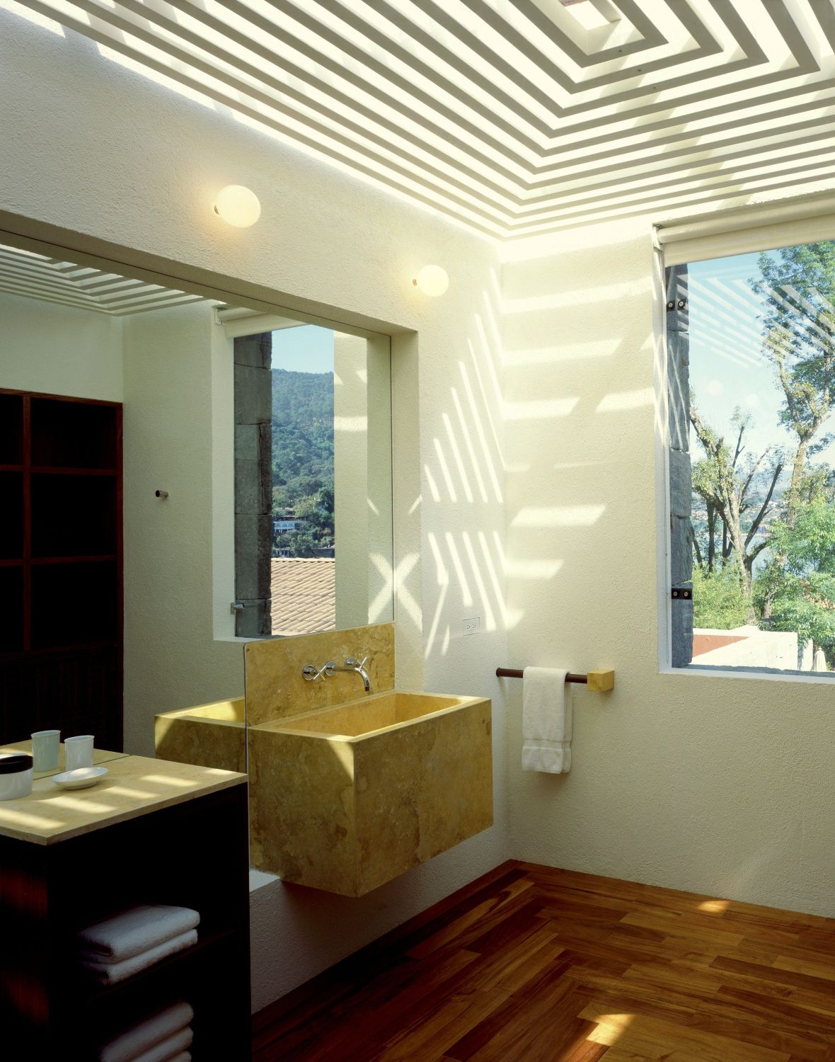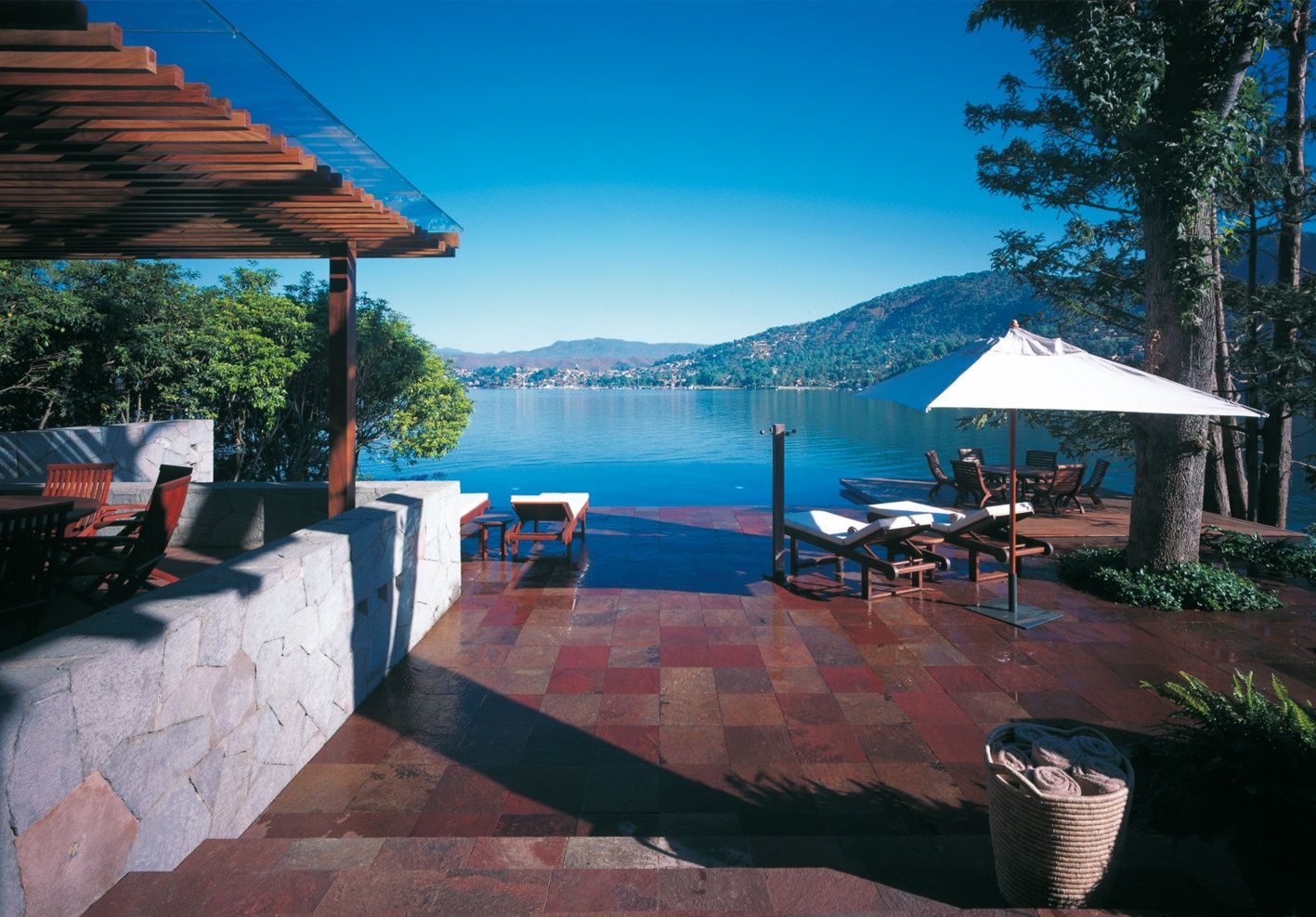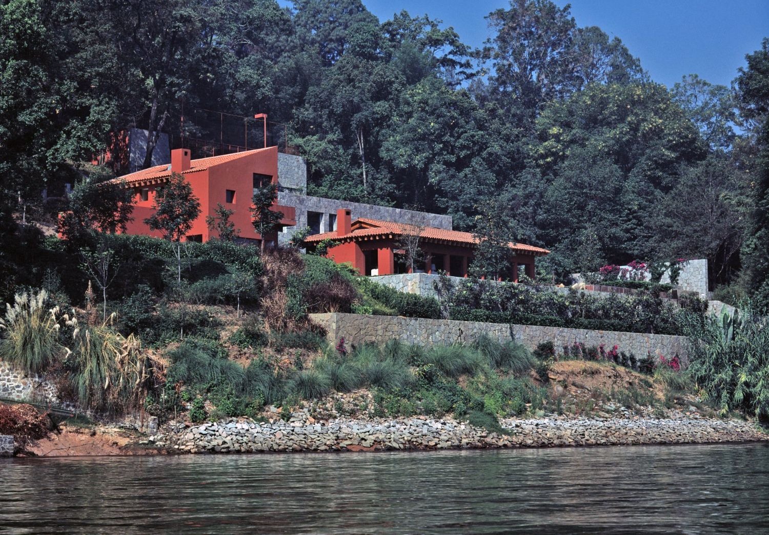 Taking into account a terrain with a steep slope and a wide range of necessities, the design separates the different volumes placing them in several levels. The different activities were also divided in such a way that the adults and the youth have their own separate spaces, and the water activities take place independently from the rest. The water from natural source was incorporated into the house as an important part of daily life establishing at the same time a connection with the lake. The trees and vegetation are an important part of the design, complementing the architecture and providing all the areas with sun, shadows and color. In this way, the house responds to its environment and offers a way of life in accordance with the climate and the culture of the owners