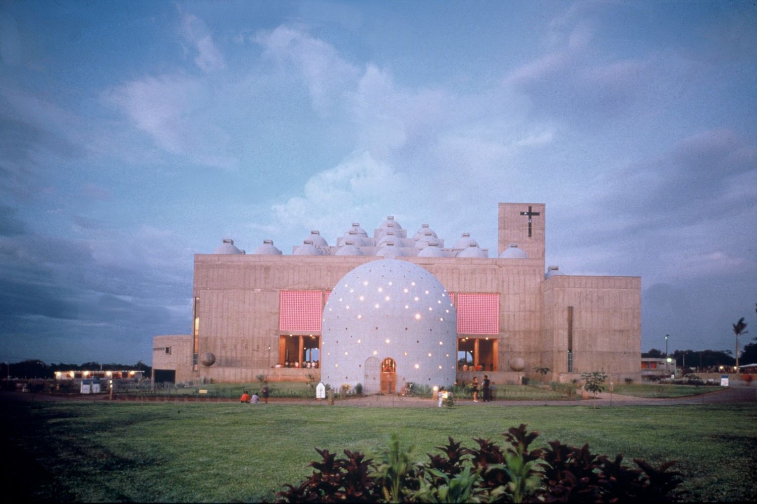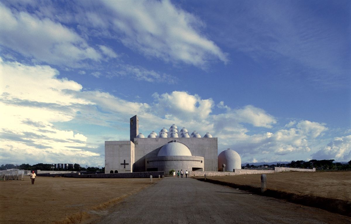 Once in a lifetime experiences leave a lasting memory on people, the Metropolitan Cathedral of Managua is one of them. Under the decisive promotion and support of Mr. Tom Monaghan the Cathedral became much more than a building, it became the symbol of faith of a suffering country, the effort of the true Catholic people, the devotion of a Cardinal and the hope of Humanity. Without the typical design process that goes through program study, approval committees and public presentations, the Cathedral was designed and built driven by human and spiritual values, with the goal of offering the Nicaraguans a place of hope, love and prayer. In 1972 an earthquake destroyed Managua and with it the Cathedral, making it impossible to restore. The new Cathedral is located in the upper part of the city on a 29 acres site. It is not only the substitution of the old one but also the new center of Managua. The design philosophy responds to the concept that the contemporary Catholic community has passed from a passive role to participation with the ecclesiastic authorities, therefore the physical distance and architectural integration between the altars and the parochial obey to this concept. For the same reasons the highest dome is located at the center of the congregation. The design gives the solemnity that the Cathedral needs without monumentalism and ostentation, so an adequate scale is created for a space in which the human being will feel in peace and joy when he or she is alone, in small groups or in a large celebration. The 63 domes provide natural light and ventilation sources. The activities that take place in the Cathedral are of four kinds: - Two or three times a year the Cardinal celebrates Mass from the exterior altar that sits above the main door to large concentrations of approximately 100,000 people who gather in the esplanade. - The periodic ceremonies take place in the main nave (150 x 40) with capacity for one thousand people. - The daily mass is celebrated in the Santisimo Chapel with an area of 1,700 square feet. The scale and illumination of this space provide the intimacy of the daily Eucharistic celebration. - Finally, the venerated image of the Sangre de Cristo is located in a dedicated circular chapel of 40 Ft diameter. Because of its shape and illumination, candle light and color is an adequate frame for such spiritual objective. The chiseled concrete responds to the spiritual and brave way of being of the country. The floor designed as a colored carpet of geometrical forms is made out of hand-made concrete tiles; doors and benches are of native wood. Overall, the building represents the culture and climate of Nicaragua, and pays homage to the people that have suffered deeply but maintain their faith and courage.