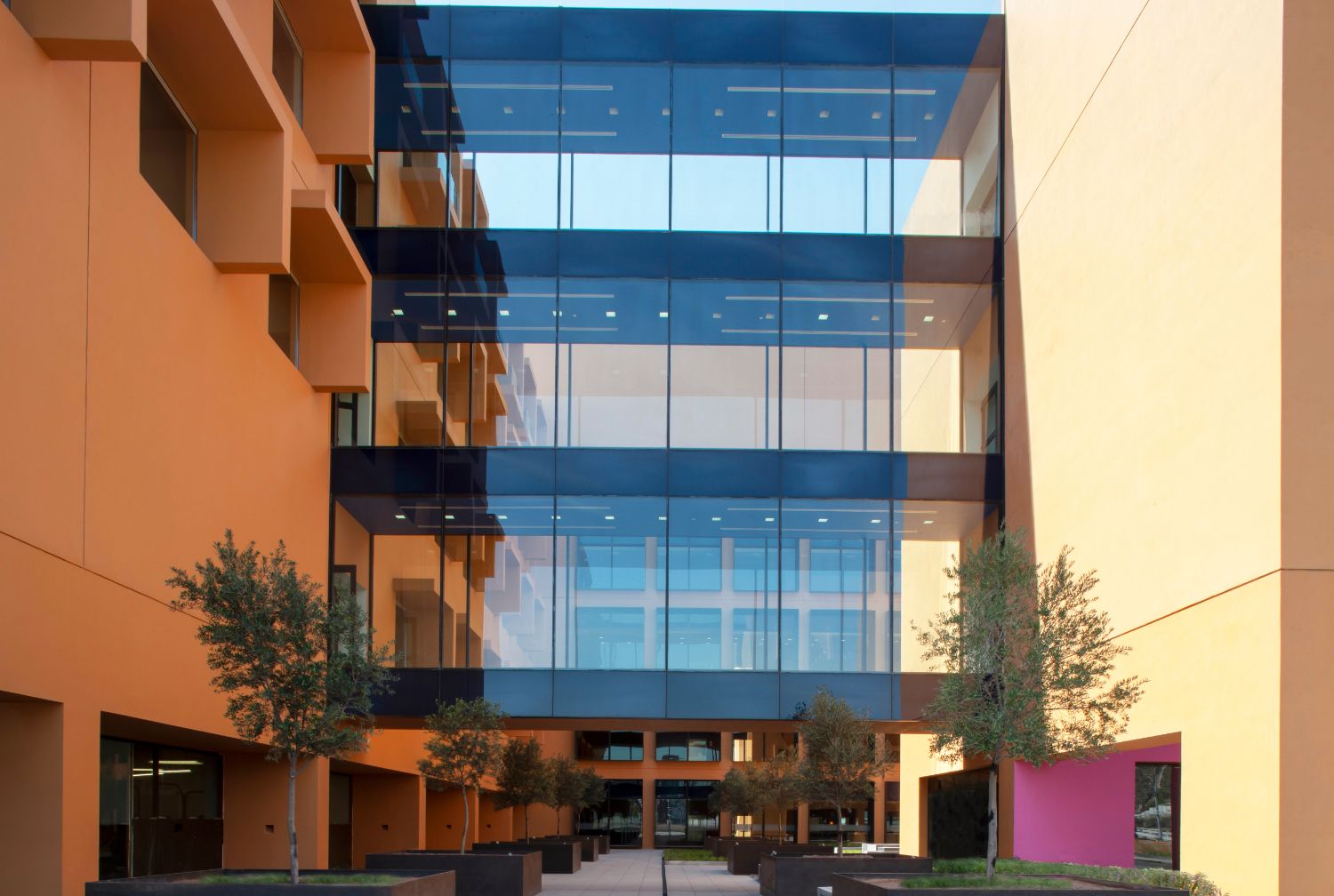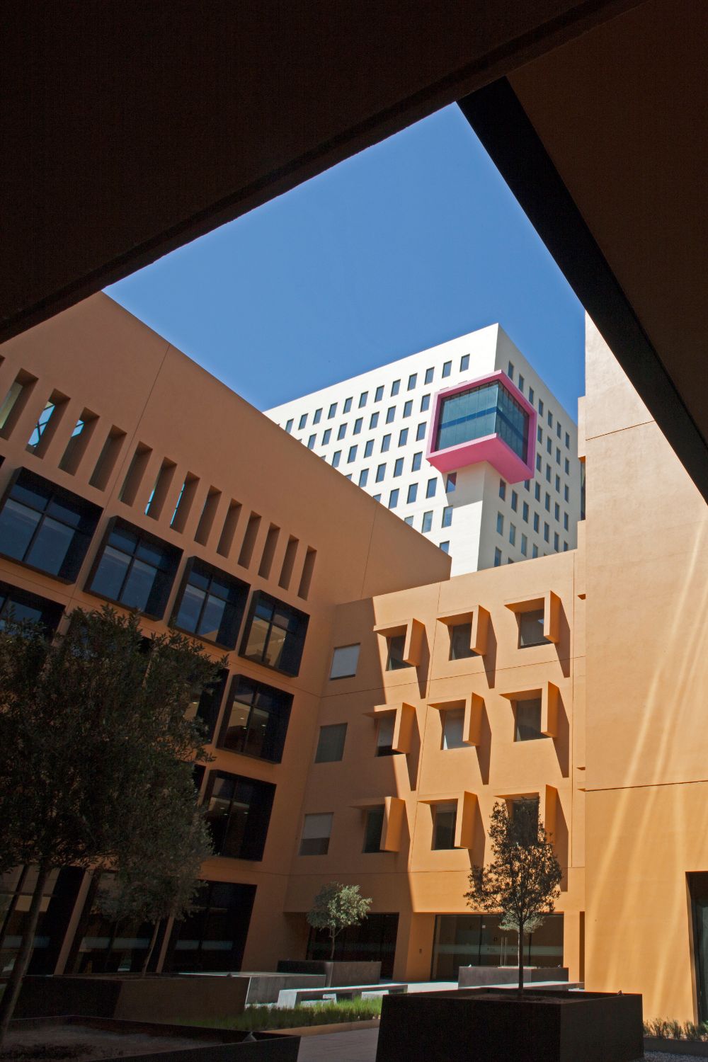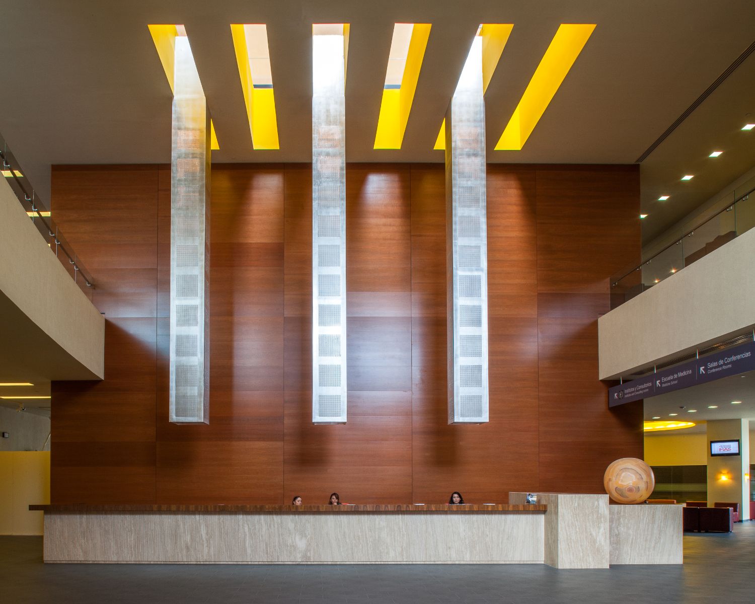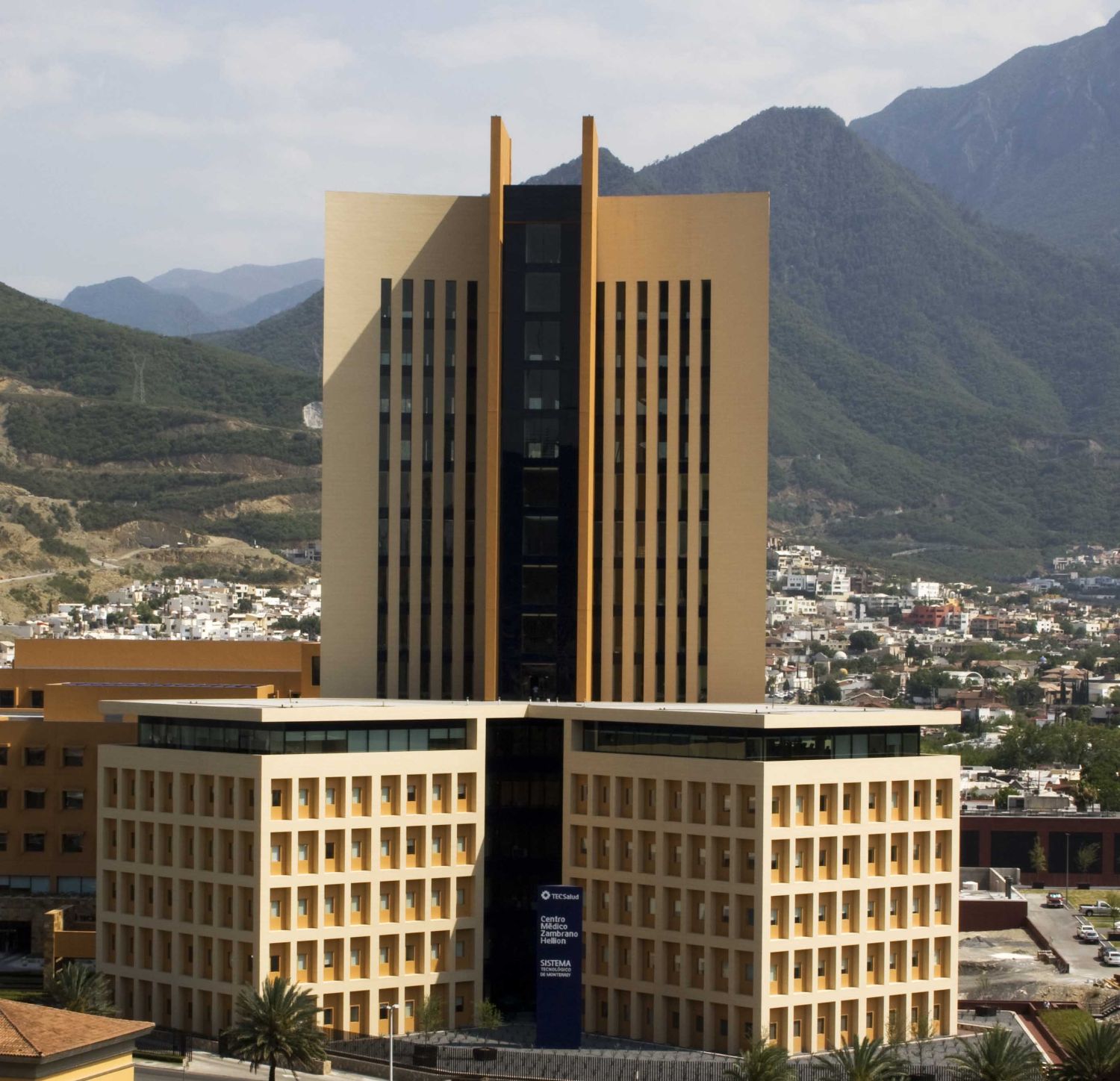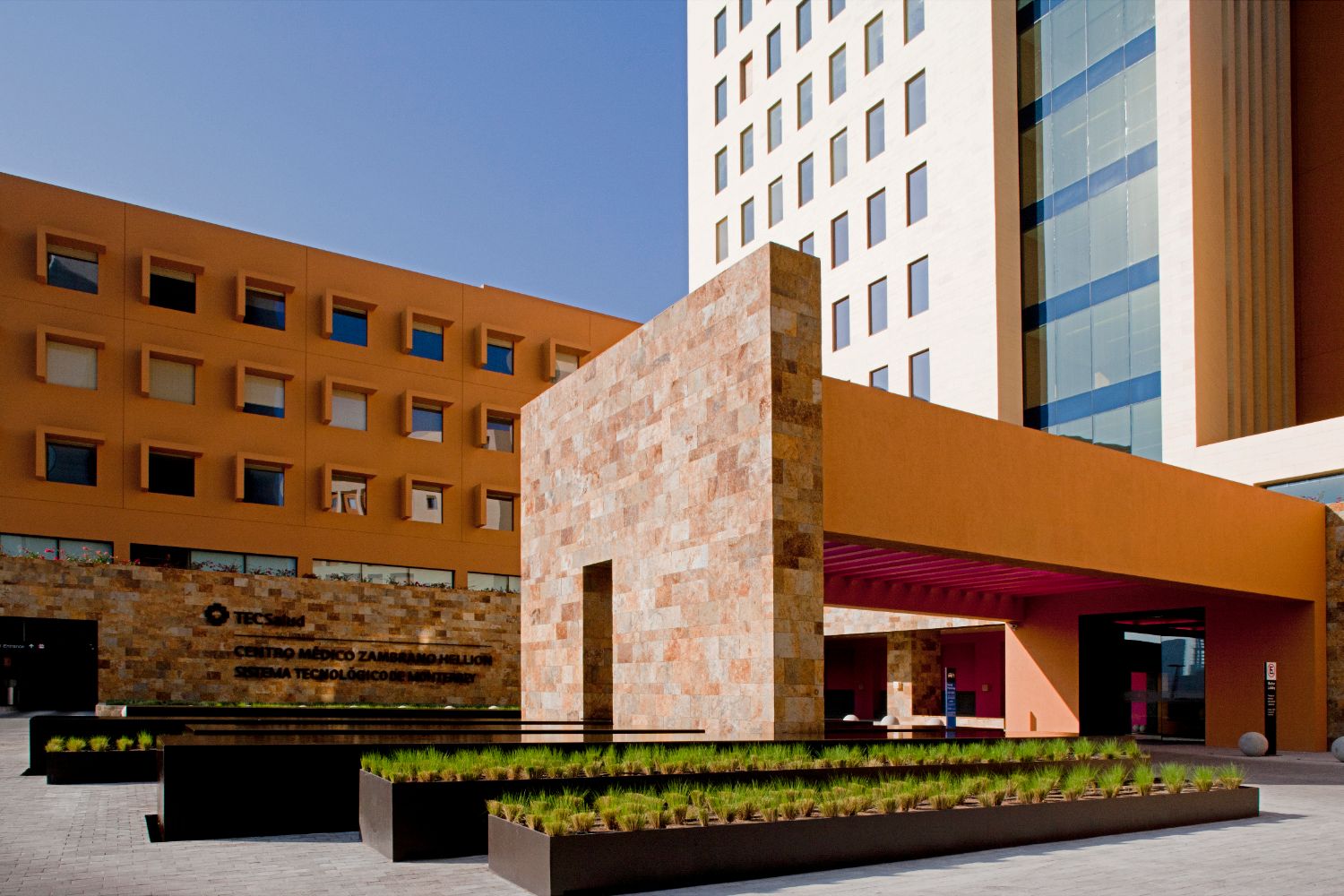 The Zambrano Hellion Medical Center is located in Valle Oriente inside San Pedro Garza Garcia municipality in Nuevo León. The State is having a great development in the field of medicine and it is intended for the new center to have an important part in this stage. This is why the San Jose and Tecnológico Hospital of Monterrey, has wanted to design a second hospital specialized in Cardiology and Cancer. It offers the highest and most technologic services. This is how the team has succeeded in diagnostics and treatment as well as the ability of providing medical and surgical services. The main idea was shaped by developing a master plan of approximately 100,000 m2 of construction which will be developed in various phases; including 300 hospitalization beds, a Diagnostics and Treatment Department, parking lot, and two research buildings. The aim was to design a friendly and positive environment for patients and doctors. Wide and open spaces were created with natural light in each area and with a view either indoors or outdoors. Phase 1 is made of two parking lots for more than 2,000 cars, more than 128 hospitalization rooms, a 10 storey building with consulting rooms, two investigation buildings; one for Cardiology and the other for Cancer, besides all of the general services like emergency rooms, surgery, maternity, newborns, resources for the patients, rehabilitation, a snack bar, and a drugstore; among other things. The Zambrano Hellion Medical Center ITESM is and will be one of the most avantgarde hospitals in Mexico and Latin America.
