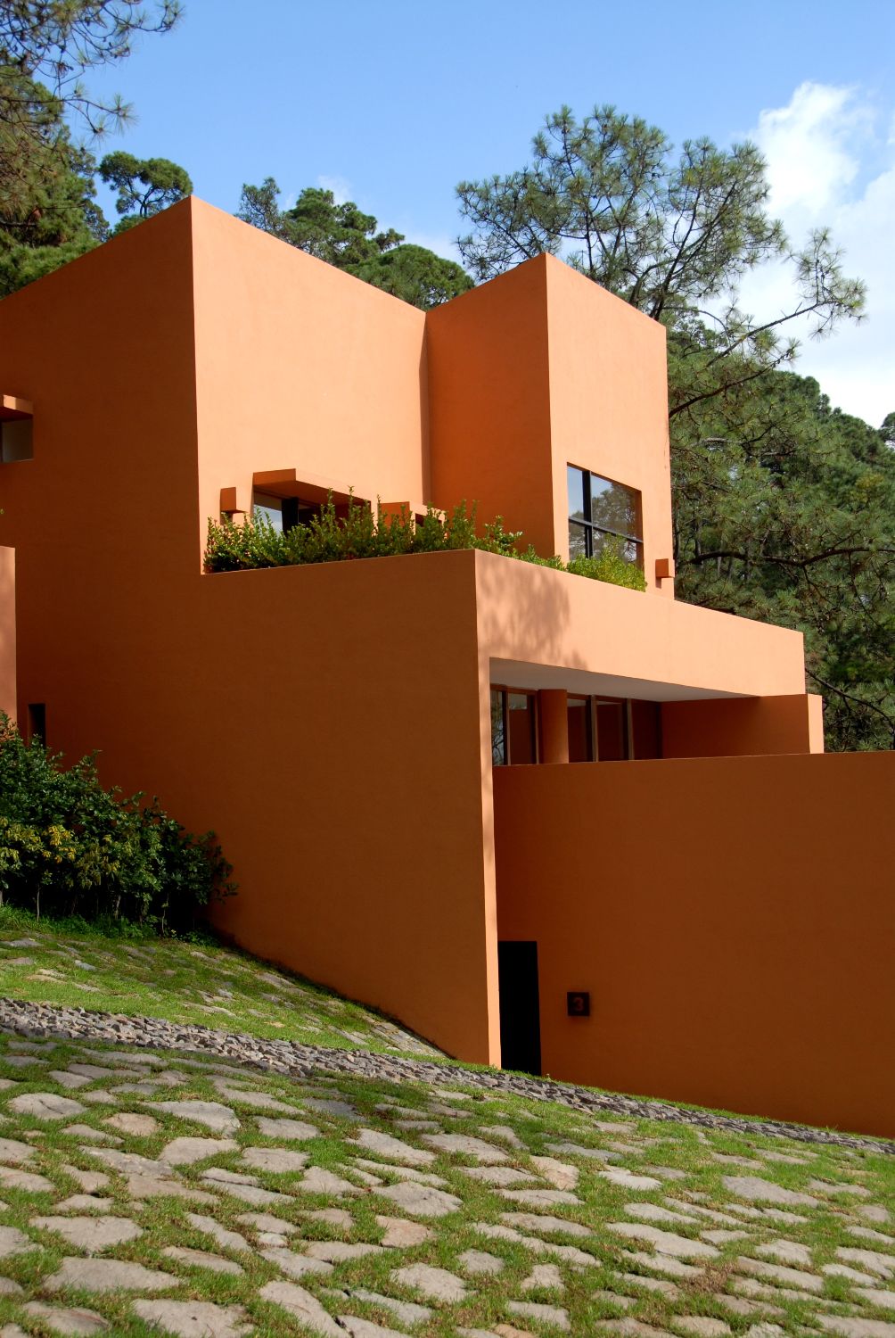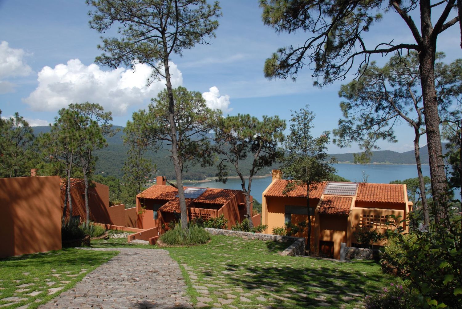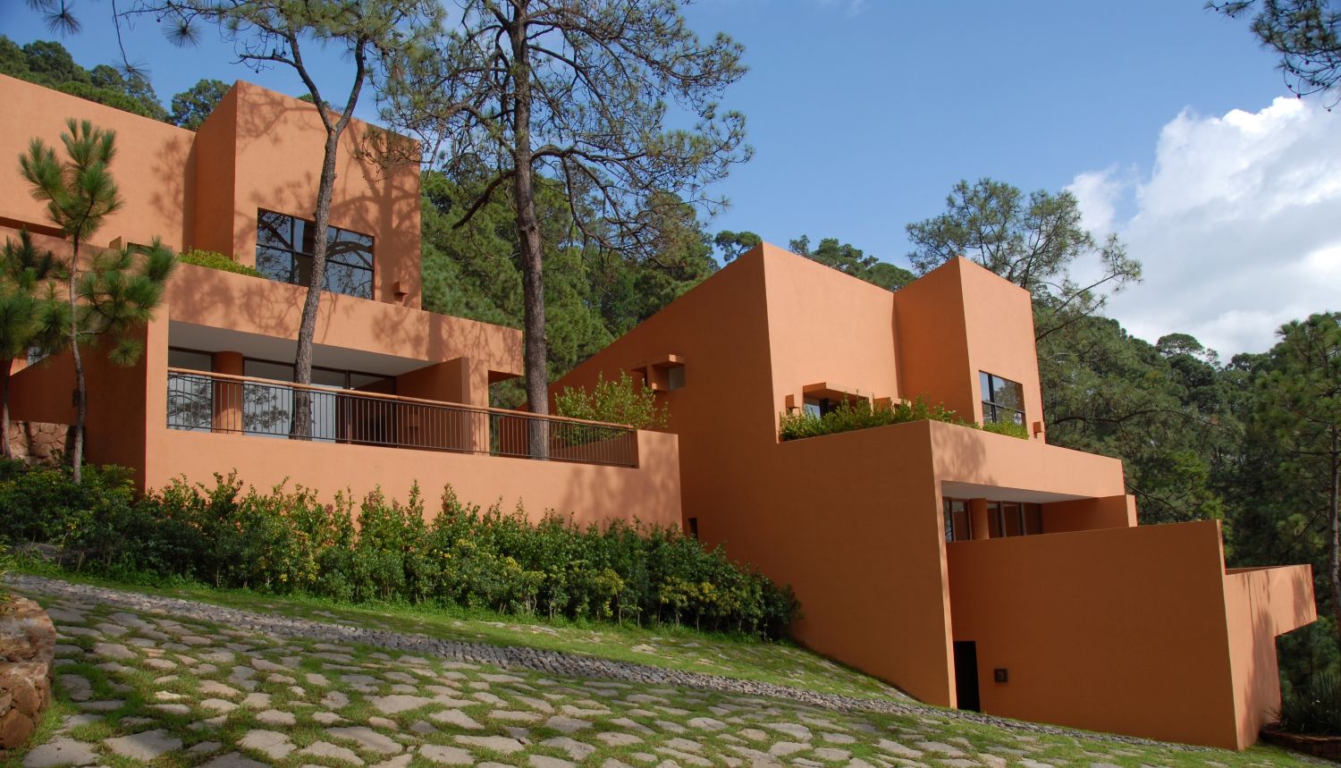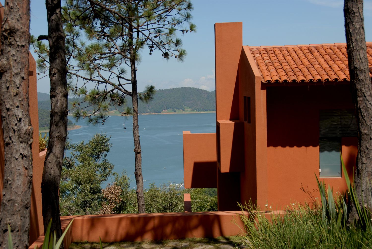 This group of houses is located in Valle de Bravo, village where the major attraction is the lake and where people enjoy having a relaxed week-end far from Mexico. The Complex has a deep slope with abundant vegetation and beautiful views towards the lake. The Complex has 8 houses, sharing a swimming pool and recreational areas, all related to each other in order to take advantage of a familiar life style. The volumes and colors of the houses, as well as the vegetation and materials used in the project create a warm atmosphere. AII the houses are built on the lower part of the site, framed by an abundant vegetation and finishing off to the bottom of the land with the panoramic view of the lake and of the village of Valle de Bravo. The concept of the houses and of the Complex in general was to take advantage of the views toward the lake and the mountains. Each house has a wide area of family and dining room linked to a great terrace in the exterior where there is a barbecue area; a large window divides these areas permitting a natural relationship between the interior and the exterior. Depending on their location on the site, the houses have small adjustments in their layouts to be able to enjoy great views toward the lake. The use of enclosure, wood in floors, tile of mud, smoothed rustic and warm colors allow us to have a good relationship with the context emphasizing a narrow relationship between interior and exterior