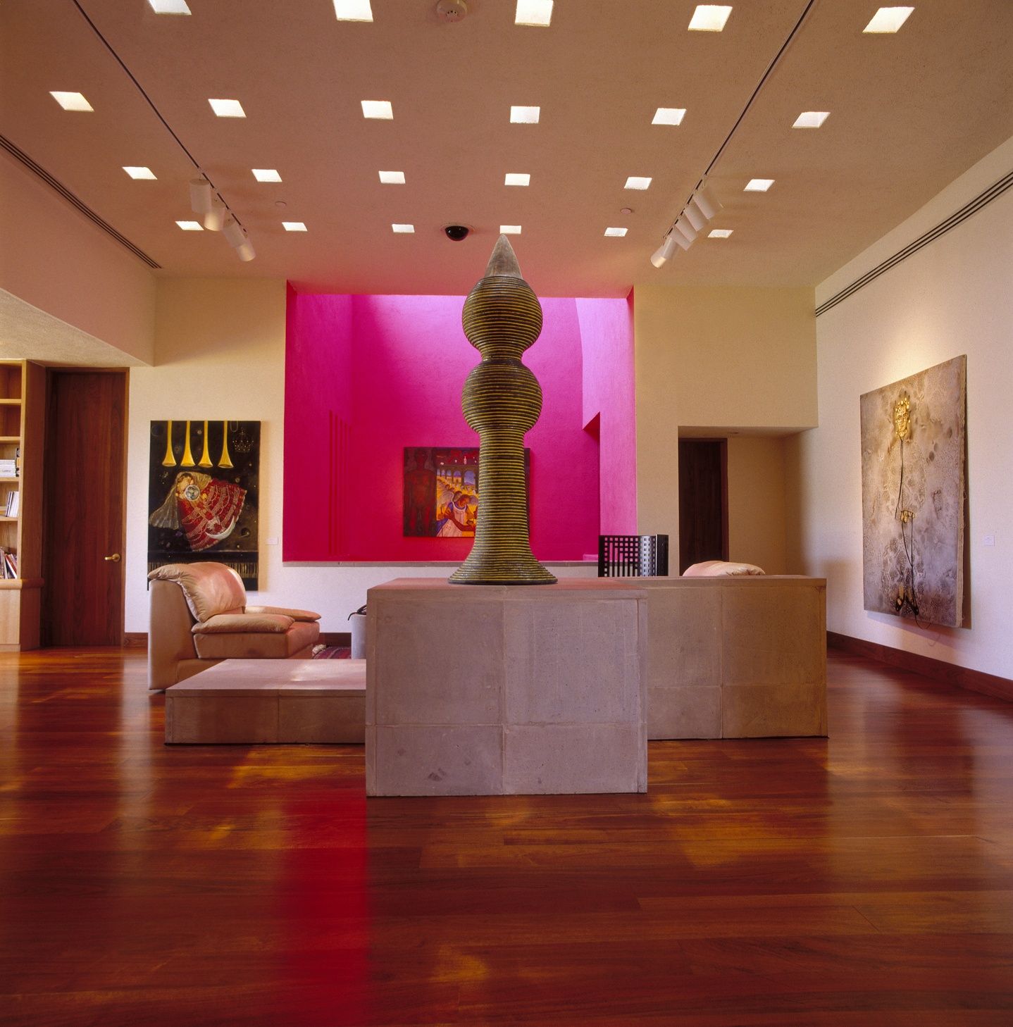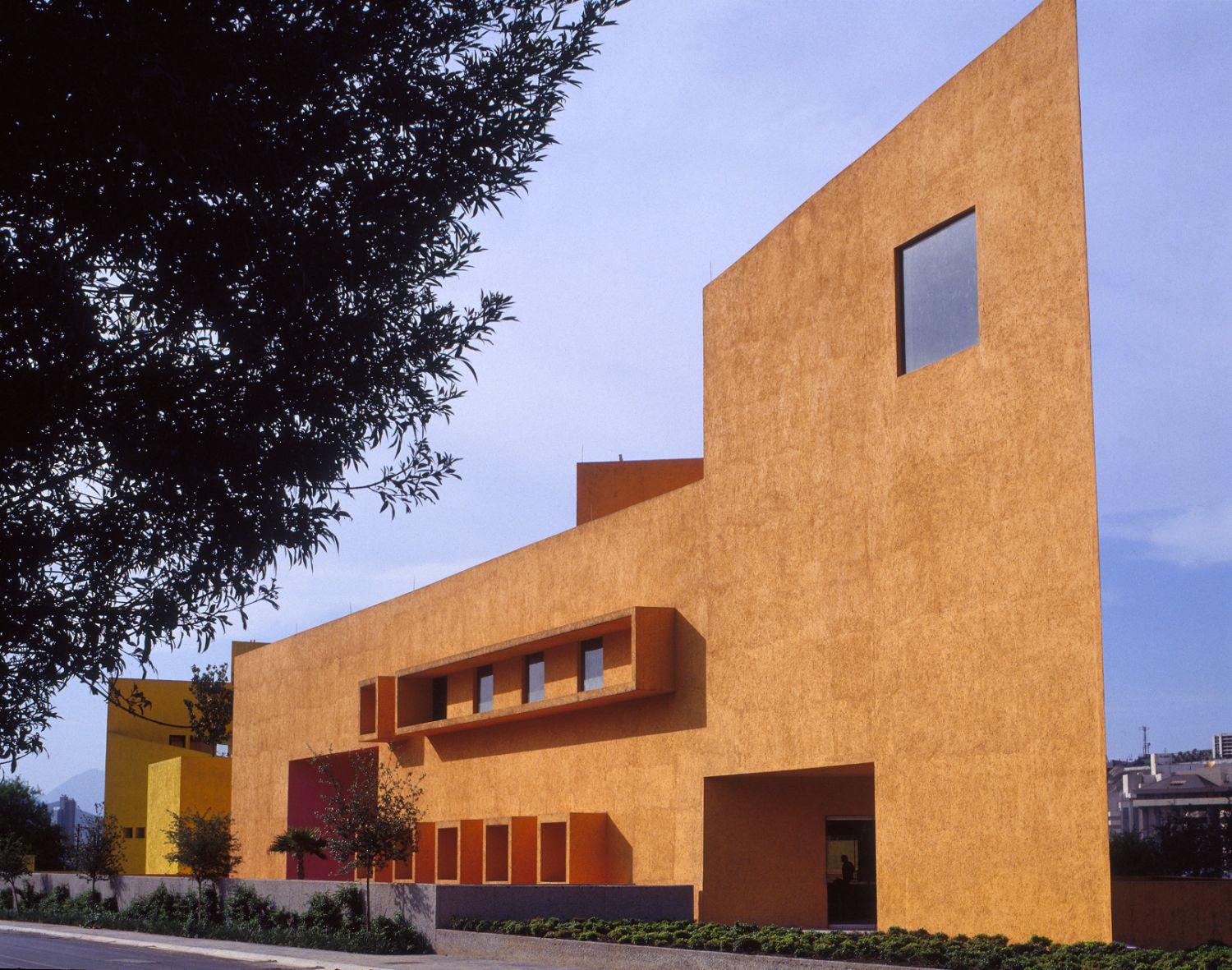 The site was difficult because of its triangular shape. As a result of this, the building became a sculptural form with different walls and volumes that create patios and terraces which embrace the building. All the terraces have views either to the mountains or to the city. The building was designed in accordance to the existing industrial urban context in order to make it fit within the neighborhood. There was a need to create two independent buildings within the complex, each one with its own personality while at the same time belonging to the whole. One of the buildings (building A) became the corporate offices for the Chairman of the Museum of Contemporary Art in Monterrey, the other (building B) was designed as free spaces in order to be rented. The parking for both buildings as well as the storage and mechanical rooms are located in the basement. The offices in Building A were conceived within the atmosphere of an art gallery. The owner is a passionate collector of Mexican Contemporary Art and wanted to be surrounded by his collection. Every corner in each one of the three floors, including the courtyards, houses art in some way. The ground floor is more of an art gallery with the reception and a multi-use space. The second floor has cubicles, meeting rooms and open offices for the staff. The third floor houses the main office which has a meeting room, library, kitchen and a small living and dining area. At the center of this building there is an atrium which rotates at each level. This allows for natural light and serves as an orientation point. Building B has 3 levels of offices, each one divided in two. All of the floors were left unfinished. The arrival to this building is from the street through a monumental stair which leads to the main lobby. The facade that faces the street has a series of projecting cubes that act as sunlight protection.