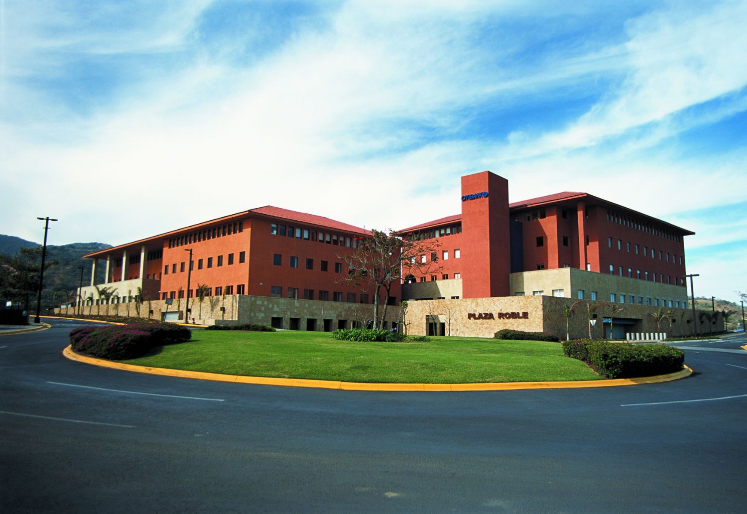 The project is located in Escazu, province of San José, Costa Rica in a zone with moderate topography, mostly low vegetation and a high index of rain. Being part of a group of buildings that include a hotel and a commercial existing center with a rotunda that unites them, the aim is to integrate all the buildings into one complex. It is a project for which we searched to create its own identity, personality, character of belonging to the place and as it is a project financed by promoters to be mainly for rent, it was important to fulfill the expectations of cost and market. All these premises gave a master plan where the external spaces like squares and patios articulate the buildings through a portico that gives scale and protection to the users from the climate elements. That plan was divided in two stages: in the first stage there are two buildings, one with four levels that integrates the portico to its structure which can be accessed through a vaulted vestibule and then lead to a big internal patio. The second building of three levels, with a character totally different but without losing the identity of the complex, is emerging from a water mirror, sensation that is achieved by elevating the arcade of three levels from inside the water mirror. A parking lot for 400 cars finishes off with the portico in the west side of the complex.