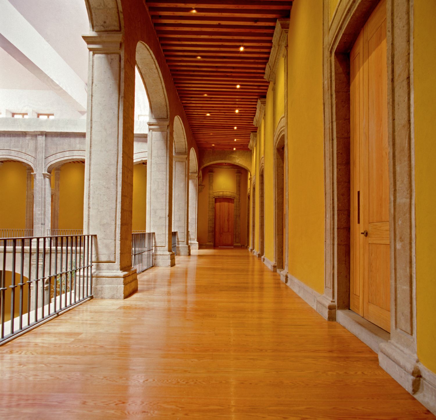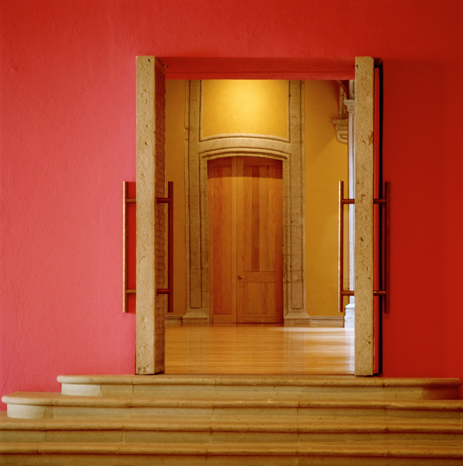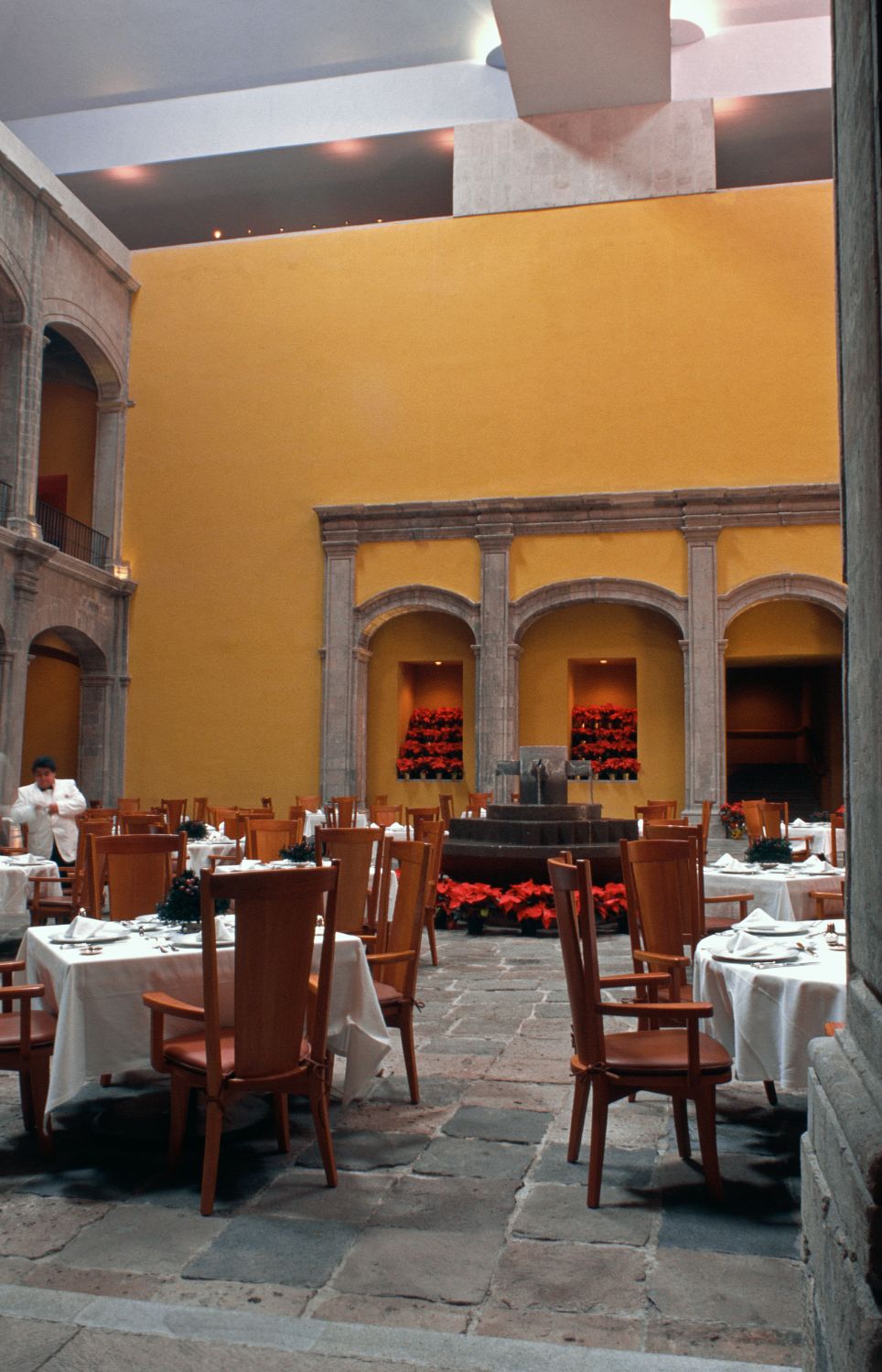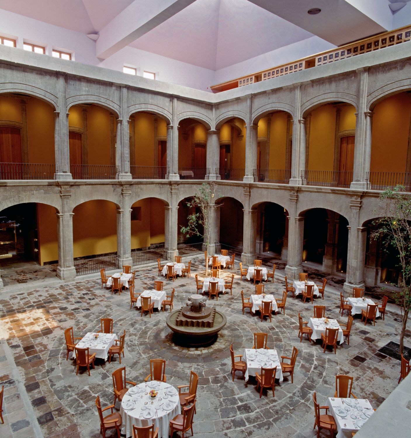 The new Banker’s Club headquarters are located in the historic center of Mexico City in a renovated 16th century courtyard building originally constructed as a girl’s school. The building had suffered severe modifications throughout its life. In the early 20th Century, the building was adapted into a theater, and two additional glass facades were added in the 1940’s. The initial criteria for the present restoration was to eliminate additional elements that proved detrimental to the building’s integrity. One facade was restored with the available information of its original design. A second facade without any information was left in its early 20th century modified state. A new structure was built on a vacant lot adjacent to the original building. This new building contains all the facilities that could not logically be installed in the colonial structure, such as parking, kitchens, health spa and a banquet hall. The facade of this new building was designed to look both contemporary and to be in harmony with the Historical building. The main entrance for both pedestrians and cars is through a spacious court which accesses the motor lobby and the pedestrian hall. The pedestrian hall leads to the focal point of the building, a central courtyard, which has been converted to become the main dining room. Four square skylights are installed above and the stone floor was acquired from an old hacienda. A colonnade surrounds the courtyard and serves as the principal circulation element, connecting the bar and exhibition gallery to the courtyard. On the second and third floor, additional colonnades provide a visual connection back down to the courtyard and provide access to private dining rooms and recreational facilities. Contemporary doors, windows and furniture complete the concept that a building can be modified over time without losing its character.