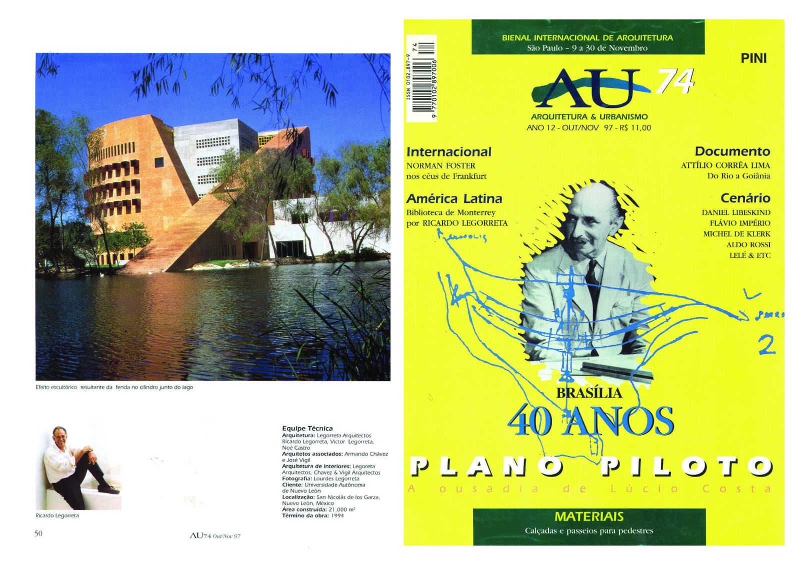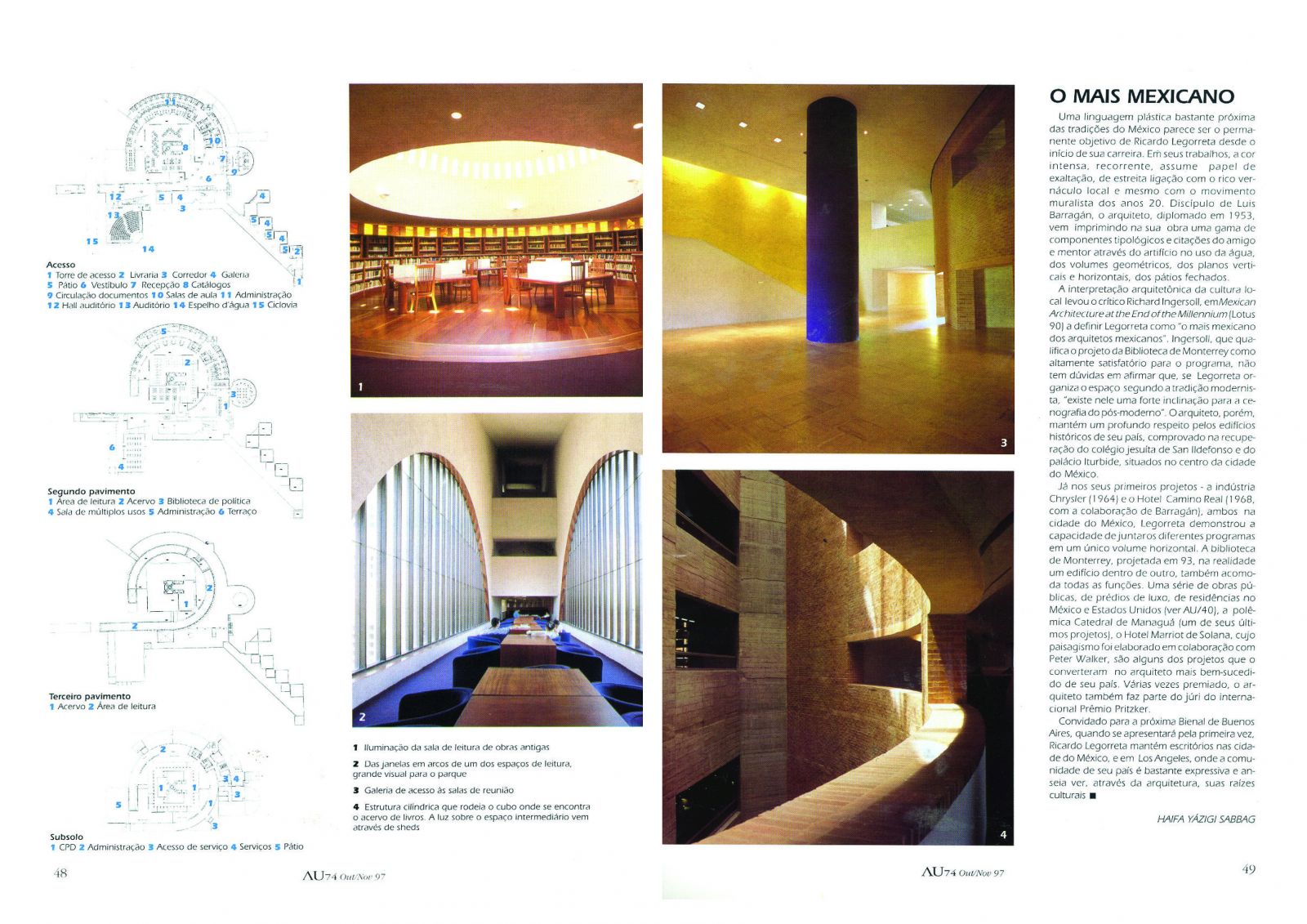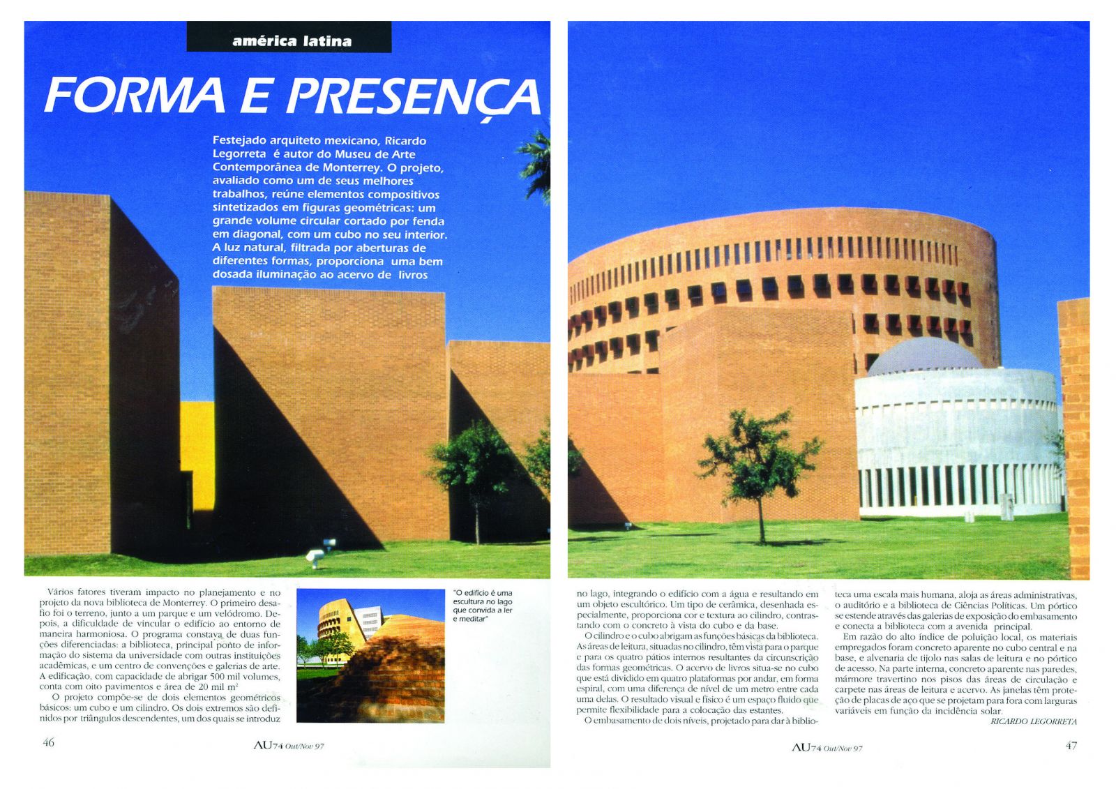BIBLIOTECA DE MONTERREY EN REVISTA AU ARQUITETURA & URBANISMO, NOV 1997 | NOTICIAS | Legorreta Arquitectos