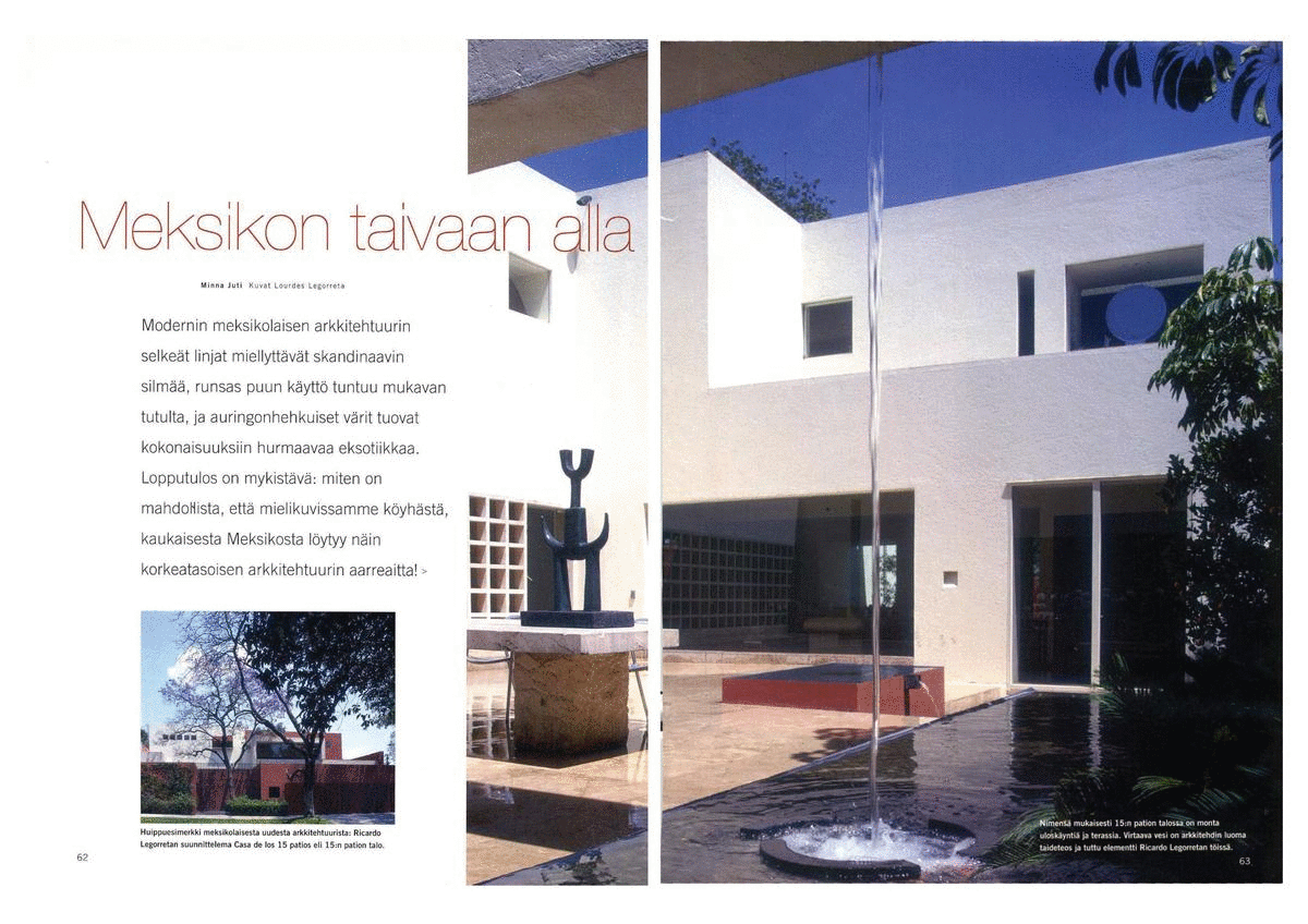 ​CASA DE LOS 15 PATIOS Y CASA LA COLORADA EN REVISTA FINLANDESA GLORIAN KOTI, ENERO - AGOSTO 2001. | NOTICIAS | Legorreta Arquitectos