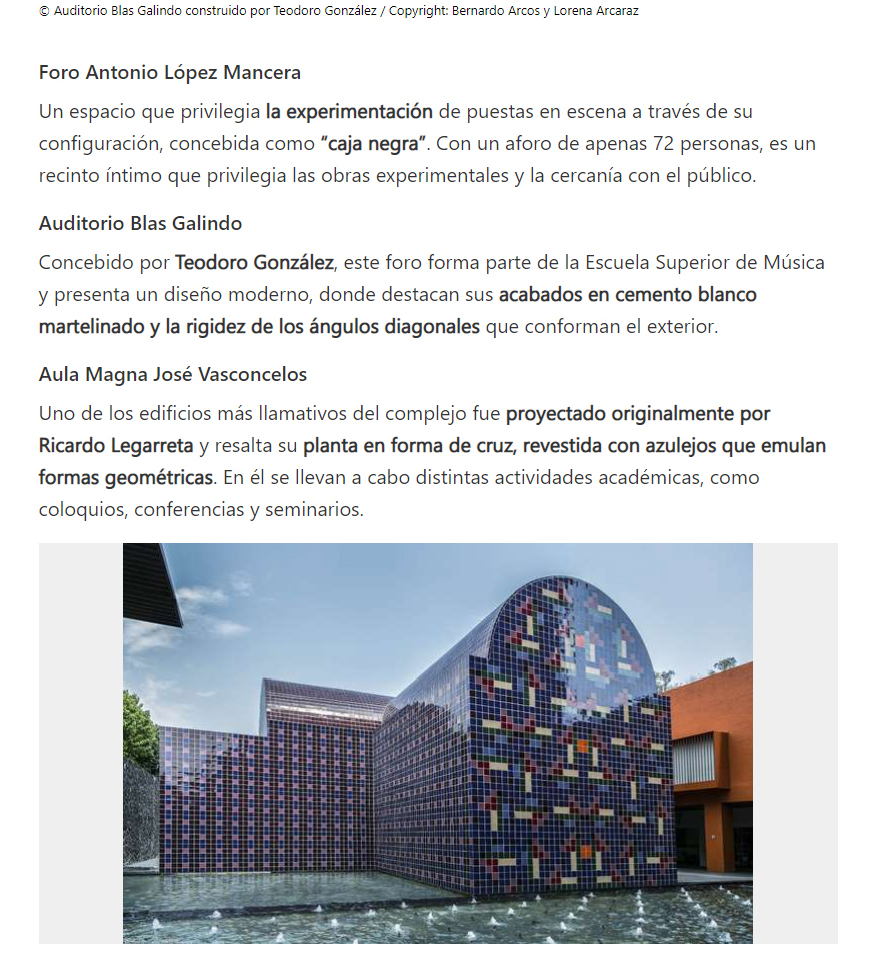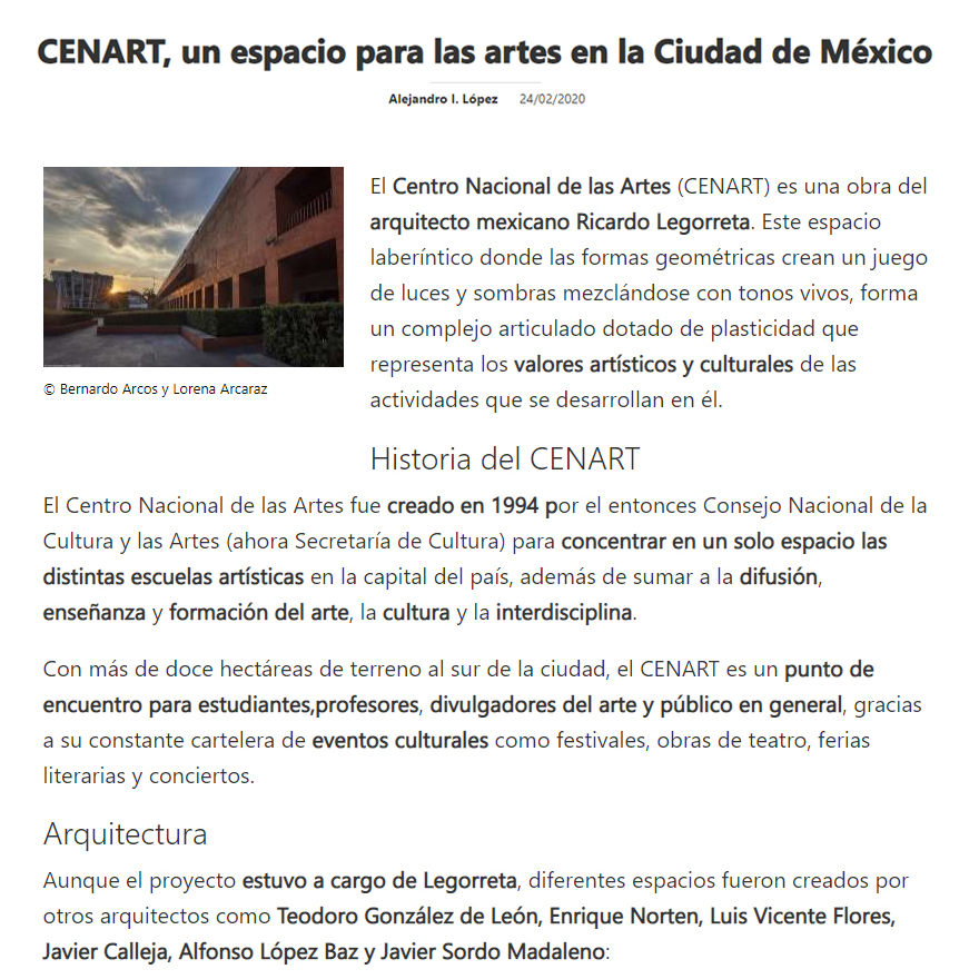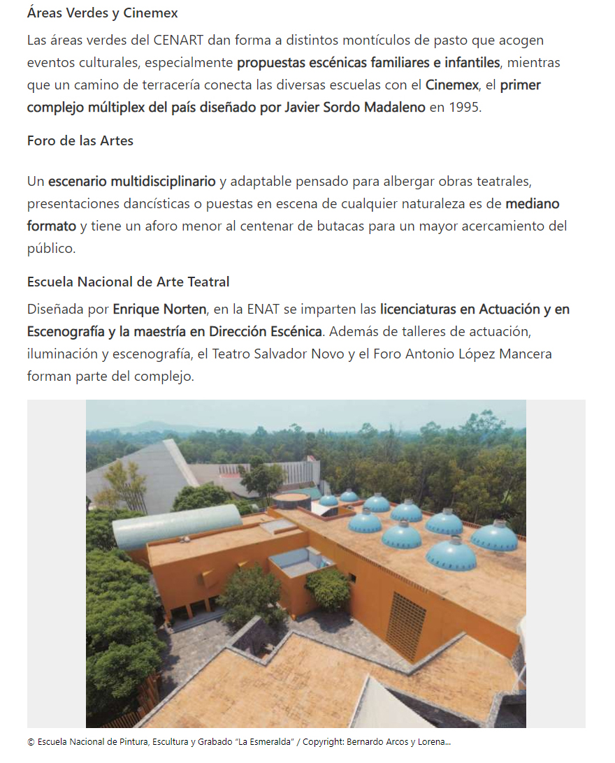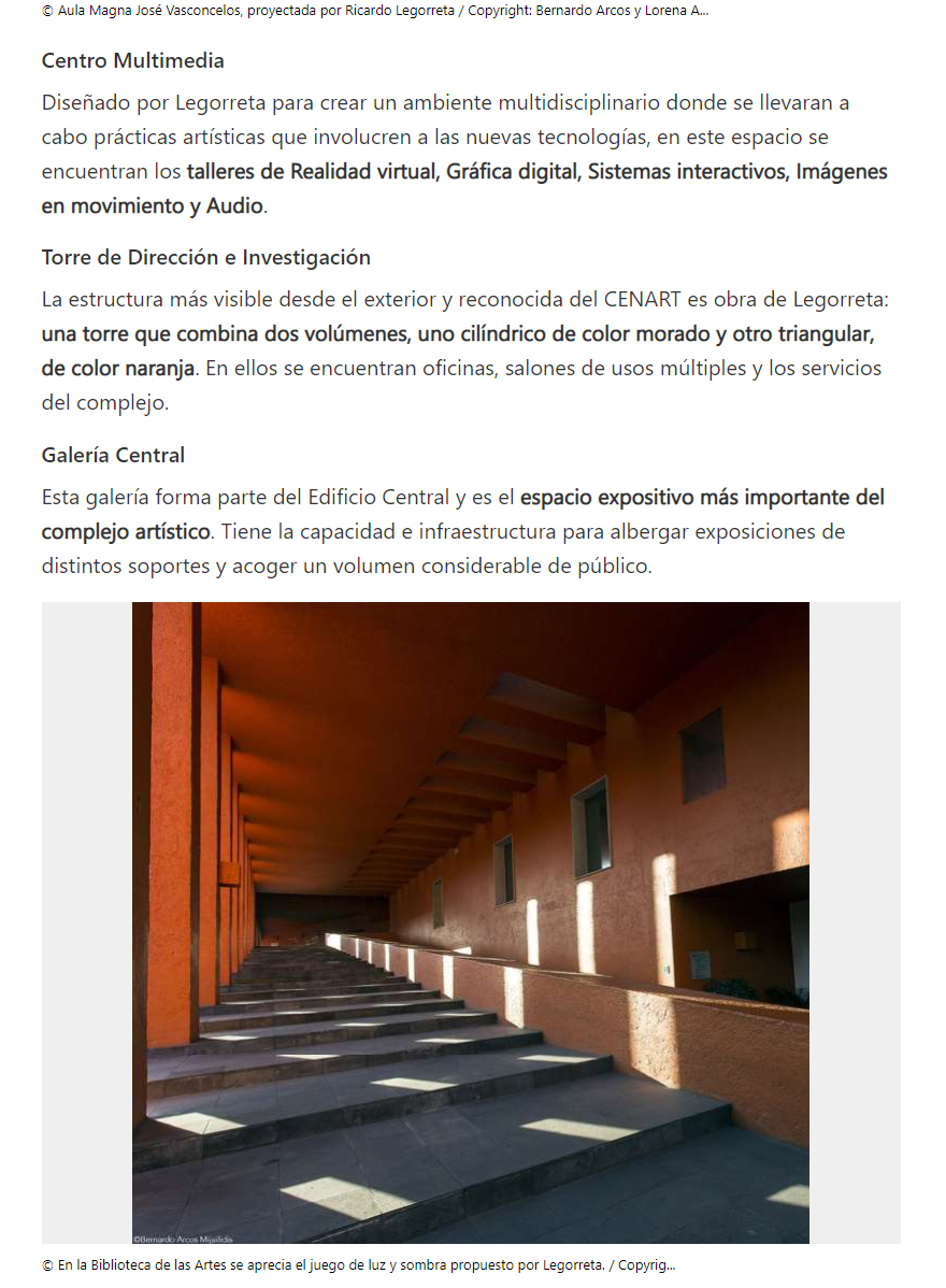 Sobre el CENART, cuyo Plan Maestro corrió a cargo de LEGORRETA®, y que contó con la participación de varios arquitectos como Teodoro González de León, Enrique Norten, Luis Vicente Flores, Javier Calleja, Alfonso López Baz y Sordo Madaleno.