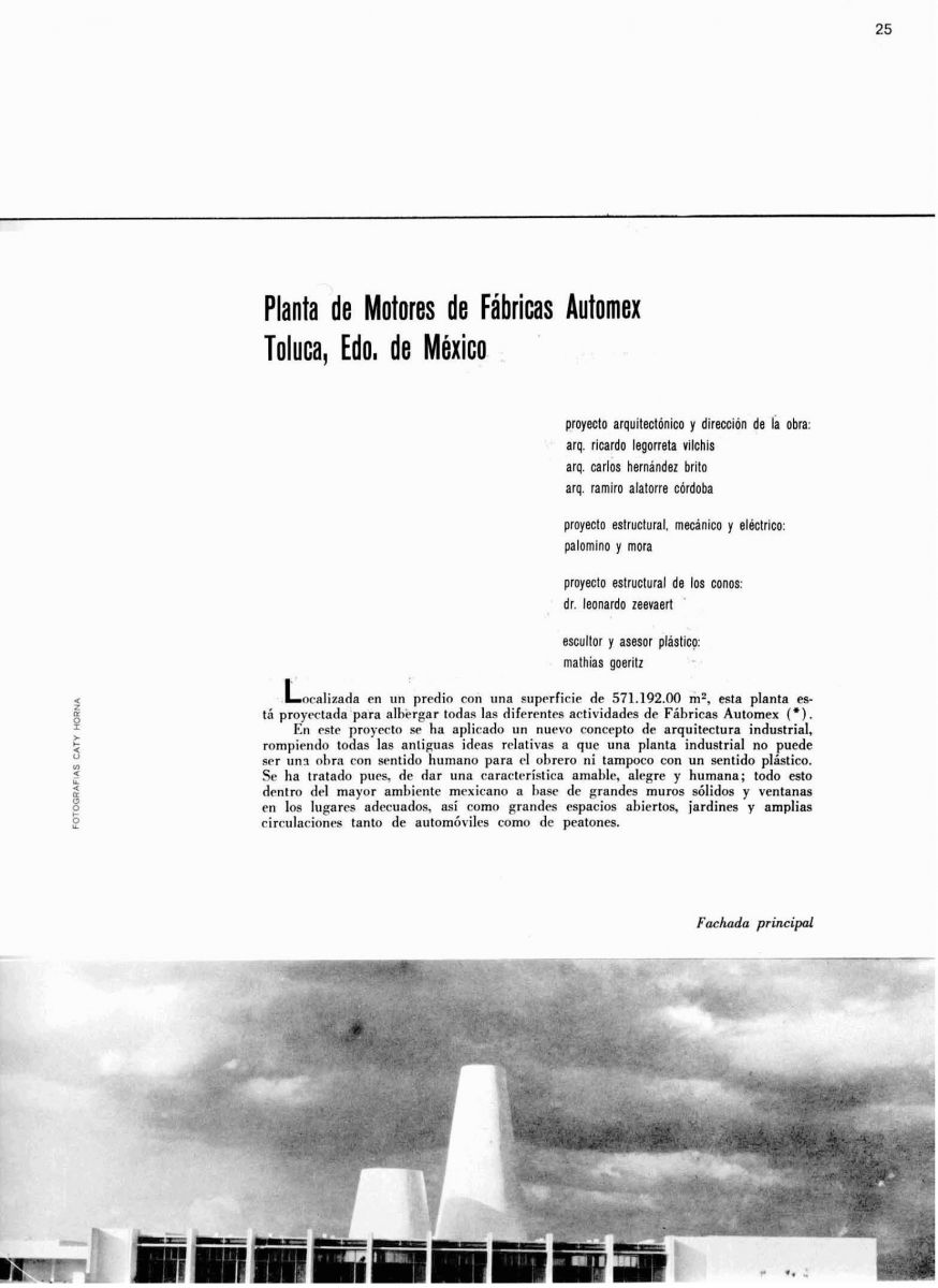 FÁBRICA AUTOMEX EN REVISTA ARQUITECTURA MÉXICO, NO. 89, MARZO 1965 | NOTICIAS | Legorreta Arquitectos
