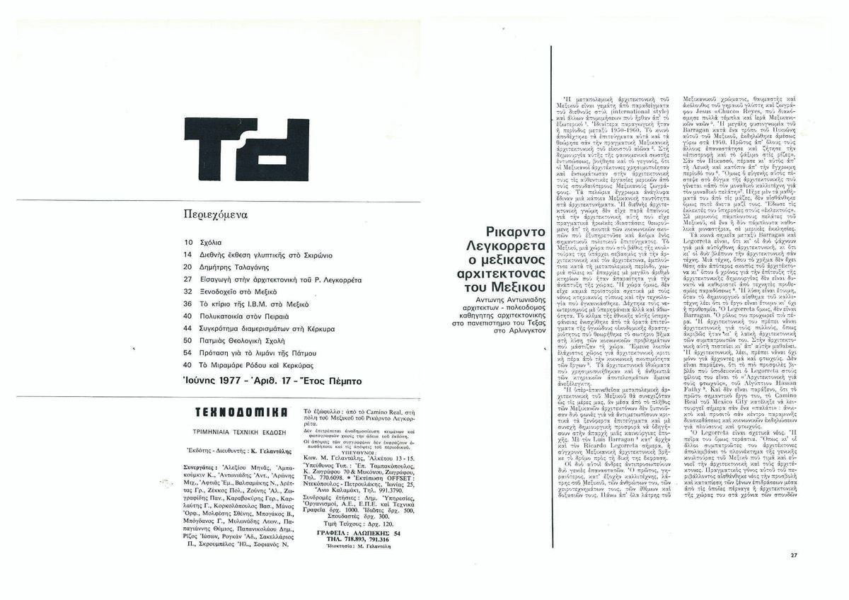 HOTEL CAMINO REAL EN PORTADA DE LA PUBLICACIÓN EN REVISTA GRIEGA TEKNOAOMIKA 17, JUNIO 1977. | NOTICIAS | Legorreta Arquitectos