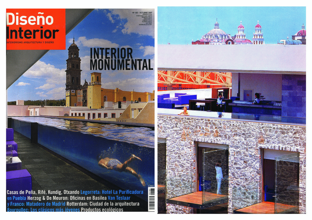 HOTEL LA PURIFICADORA EN PORTADA DE REVISTA DISEÑO INTERIOR, OCTUBRE 2007.
