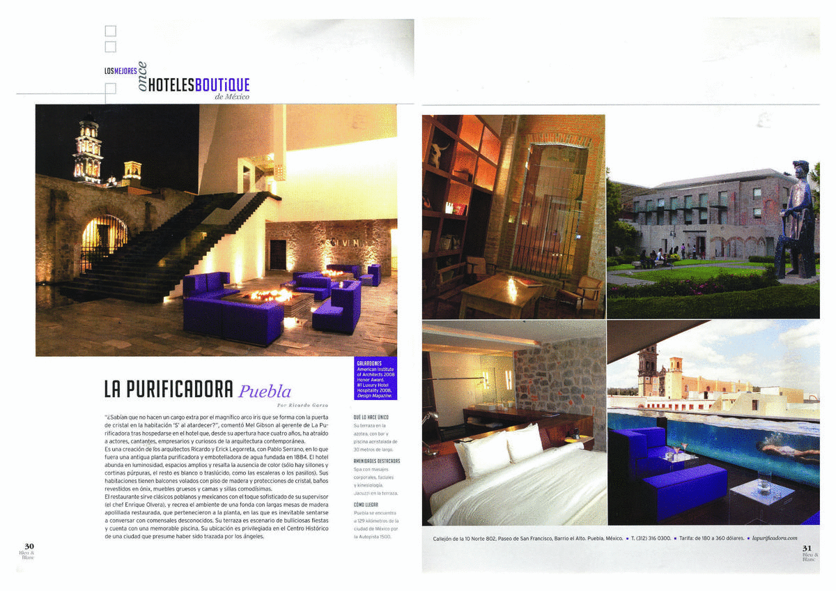 HOTEL LA PURIFICADORA EN REVISTA BLEU & BLANC, SEPTIEMBRE 2011.
