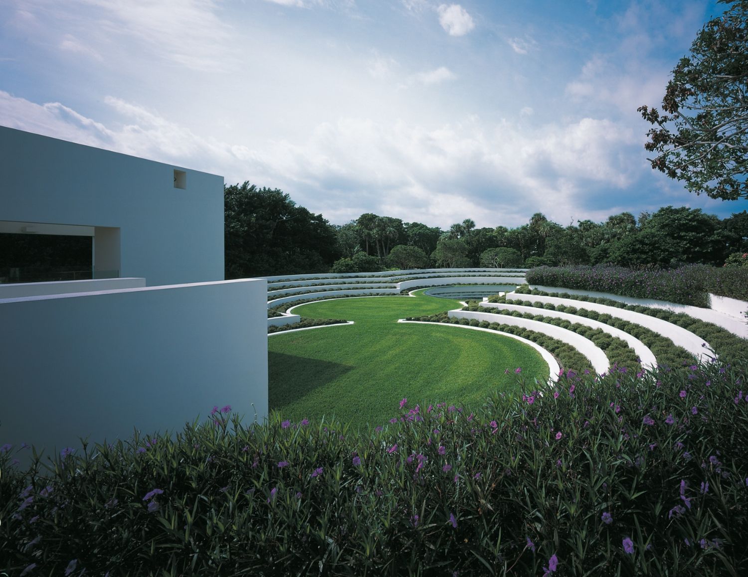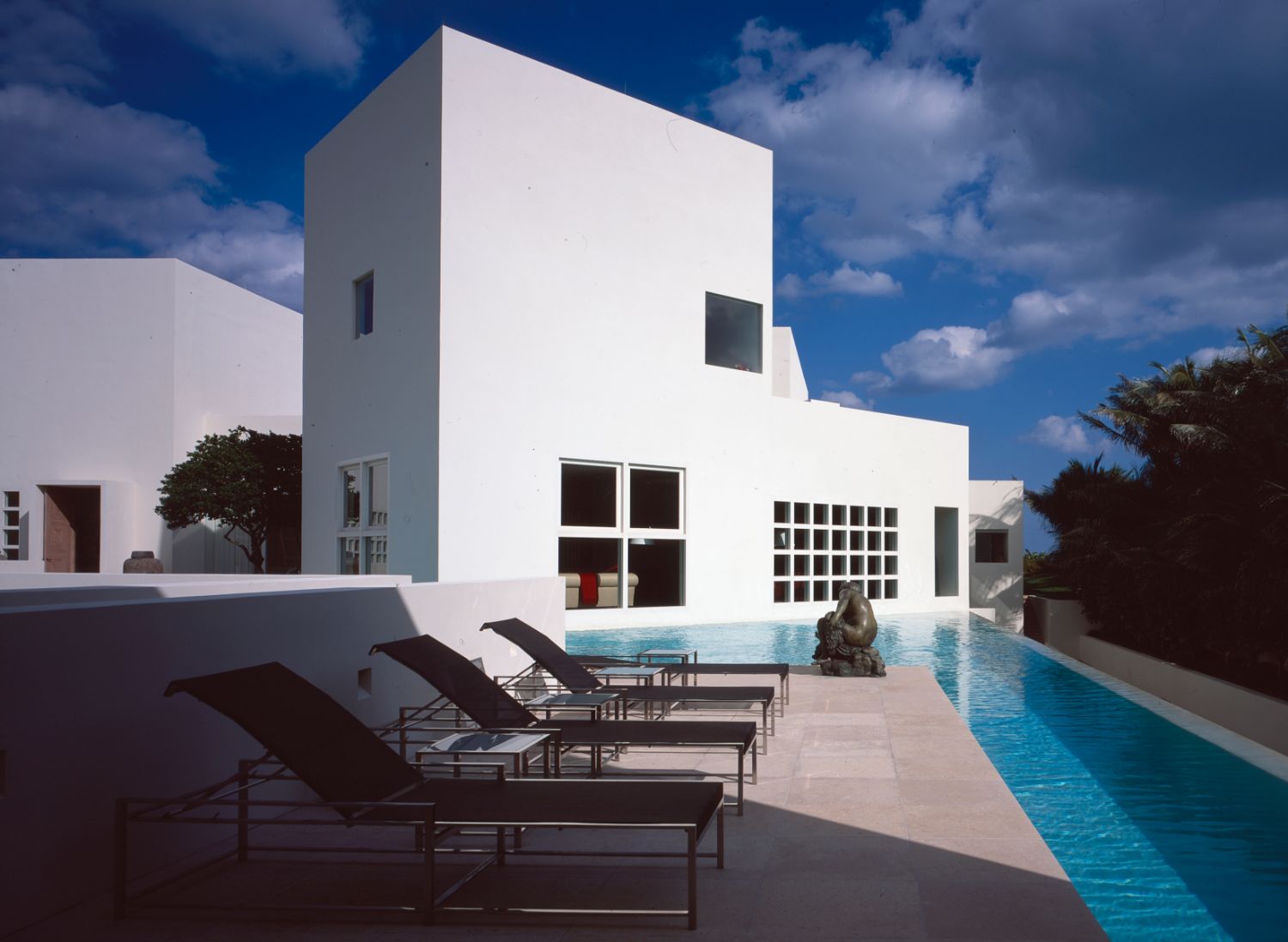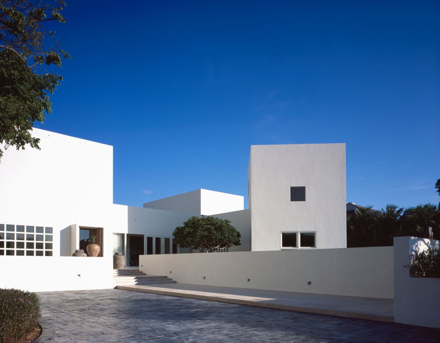 Esta grande casa, construida en la “Gold Coast” del Sur de Florida, es un icono de la buena vida de Florida. Situado en una playa del océano atlántico, el terreno se localiza entre la costa y un canal de navegación, en una zona donde se le autoriza a los dueños estacionar sus barcos en frente de su propiedad. El área tiene una vegetación tropical muy densa y tiene un solo acceso por la calle principal que lo vincula con la costa. La filosofía del diseño fue crear un escape tropical para los clientes quienes viven en el norte de Estados Unidos. El color predominante es el blanco que fue un pedido especial de los clientes quienes querían alejarse de las tonalidades oscuras del norte, asociando el blanco con la luminosidad de Florida. La proporción de los pórticos, puertas y ventanas está regida por la fuerte luminosidad de la zona y tiene en cuenta las reglamentaciones para la protección contra huracanes. Las ventanas y puertas fueron diseñadas para aguantar los fuertes vientos generados por los huracanes sin necesidad de ocultarlas. Dobles alturas y volúmenes girados a 45 grados producen el movimiento necesario para crear diversos ambientes interiores y exteriores. La torre de entrada, que es un volumen alto, permite una vista inmediata hacia el océano cuando uno pasa la puerta de entrada. La mayoría de los cuartos tienen una vista espectacular al océano y la recámara principal situada en el segundo piso tiene un largo balcón con vista a la playa como al océano. La alberca se proyectó en la parte trasera, tanto para protegerla de los vientos como para disfrutar del jardín posterior mismo que fue diseñado con formas geométricas que se integran a la arquitectura y sacan ventaja de los desniveles. El proyecto es el primer proyecto de Legorreta + Legorreta en el Sur de Florida ya conocida por su cultura latina y sus diseños tropicales. La arquitectura encaja perfectamente con la costa de Florida ya que se erige sobre la duna de la playa como una joya en la arena.