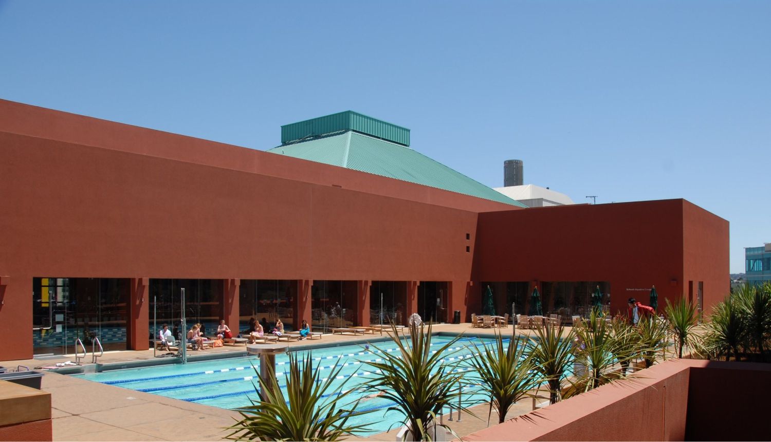 Una vida de campus de alta calidad promueve un aprendizaje óptimo y un rendimiento eficiente en el trabajo, anima a contratar y retener a los miembros del profesorado y estudiantes y hace del campus un lugar agradable donde trabajar, aprender y visitar. Ubicado en uno de los más grandes desarrollos de San Francisco, el Community Center del UCSF Mission Bay Campus ha sido concebido como el corazón del campus, donde los estudiantes, profesores y la comunidad pueden reunirse para disfrutar, hacer vida social e interactuar. El edificio de cuatro plantas, con 14,570 m2, proyectado para acomodar a 2,000 personas en su primera fase y 9,100 personas en su finalización, combina una variedad de usos en una única estructura. El diverso programa combina tales requisitos como un gimnasio con canchas de basketball y volleyball, albercas (una cubierta y el resto exteriores), comedores y cafeterías, oficinas y comercios, las cuales están organizadas alrededor de un atrio. La primera planta está organizada con diferentes usos de los programas; el principal servicio de comidas está orientado directamente al jardín, el gimnasio dirigido hacia las canchas de tenis, el salón de juegos y la biblioteca estructurados alrededor del atrio. La segunda planta, donde se encuentran la piscina cubierta con vestidores para hombres y mujeres, servicios para los estudiantes, oficinas y un auditorio con capacidad para 400 personas y con la posibilidad de ser dividido en pequeñas salas, están conectados a la primera planta a través de una gran escalera. La tercera planta cuenta con otros servicios para estudiantes. Esta área atiende los requeri-mientos básicos de la comunidad académica como es la enfermería. En la cuarta planta el edificio combina diferentes programas como son el gimnasio y las canchas de squash y racket ball. La alberca exterior, ubicada en este nivel, está acomoda-da en el lado oeste del edificio con una gran área de terrazas que aprovechan las vistas de la bahía. Estas terrazas, de escala humana, son utilizadas para actividades recreativas como son recepciones, ceremonias de graduación y entrega de premios.