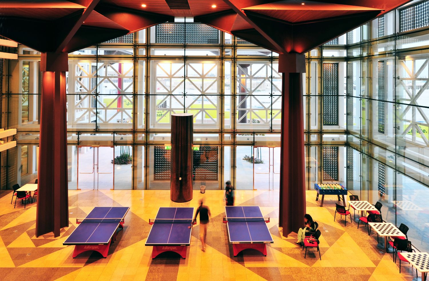 Este edificio provee hogar fuera de casa a todos los estudiantes de la Universidad Hamad Bin Khalifa (UHBK). Determinado a crear una atmósfera vibrante, promoviendo la interacción cultural y social, este proyecto multifuncional ofrece diversos servicios en todas las áreas como son salud, apoyo social, psicológico, financiero y alojamiento, así como de recreación, contando como complemento integral la cultura y el deporte. Proyectado para brindar servicios a más de 10,000 estudiantes, el propósito de este nodo urbano es el de crear una atmósfera familiar, relajada y lúdica en la cual el estudiante inmerso en esta atmósfera universitaria con orientación internacional, desarrollará sus actividades con personas de todo el mundo con un sentido de unidad.