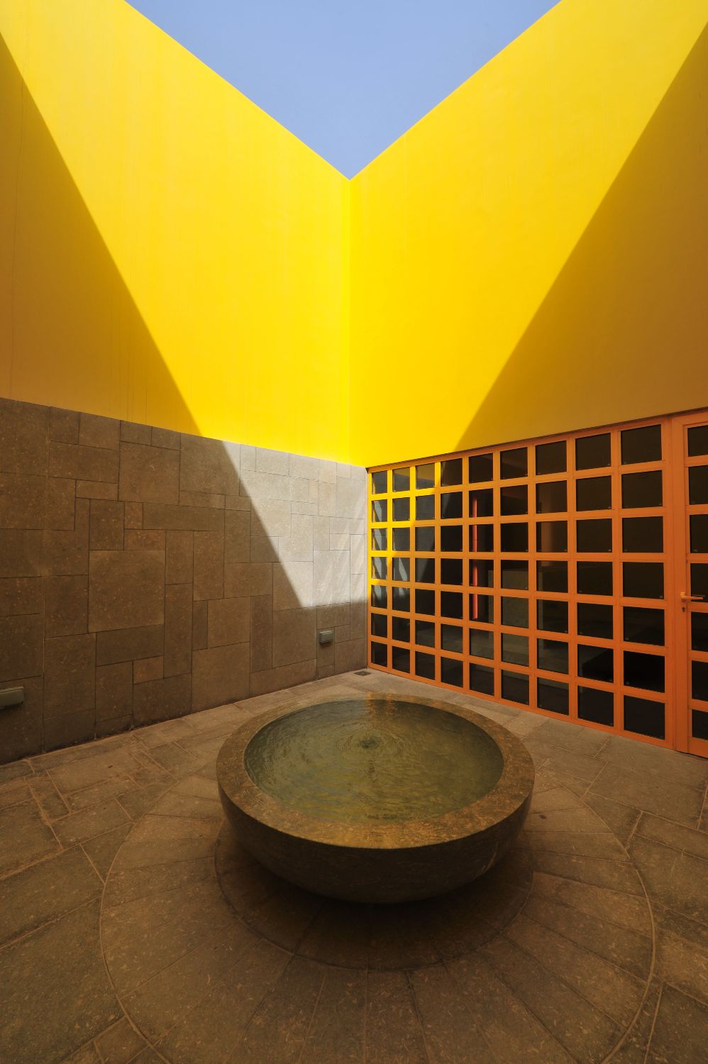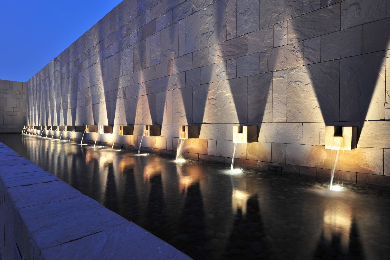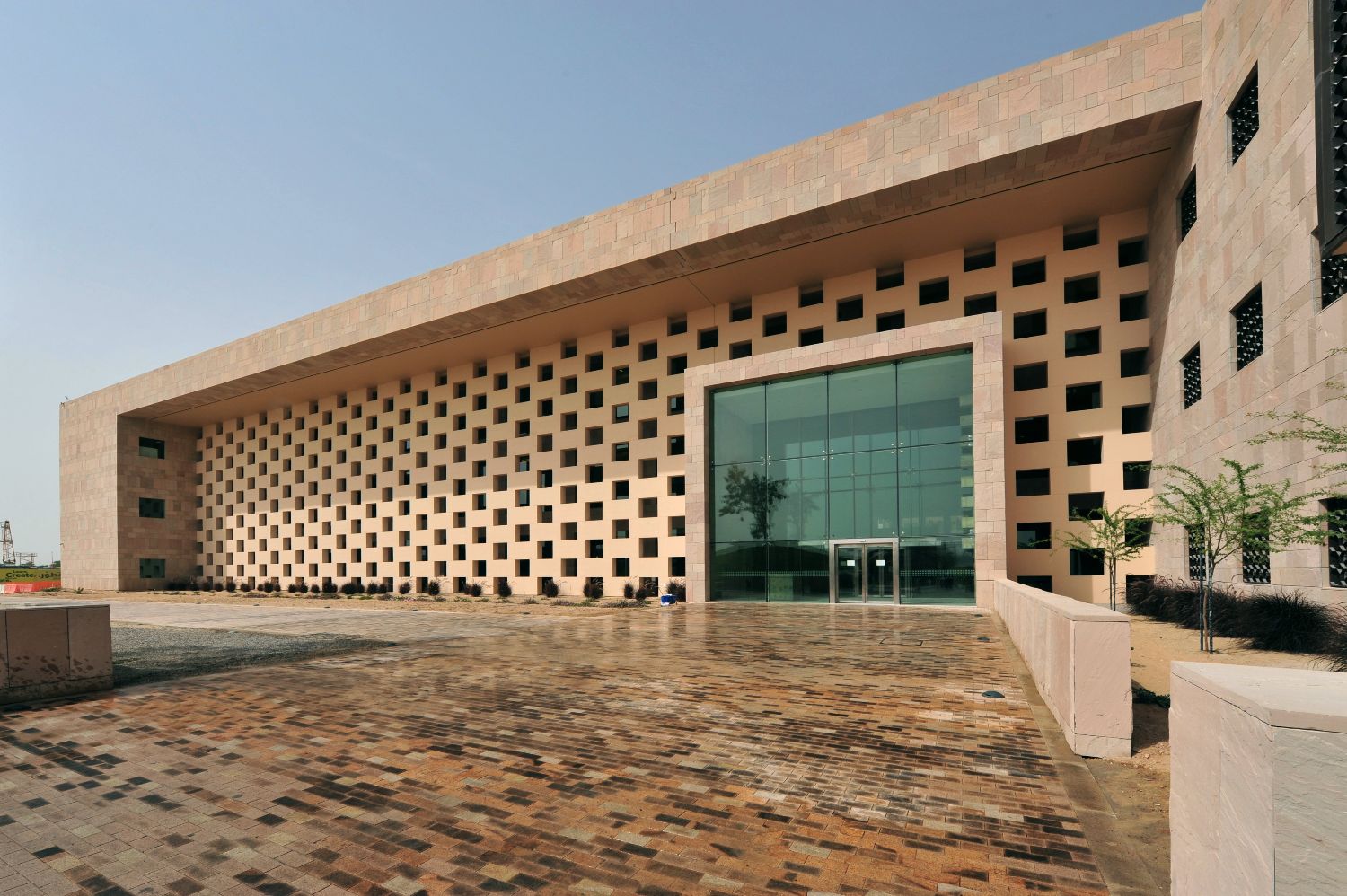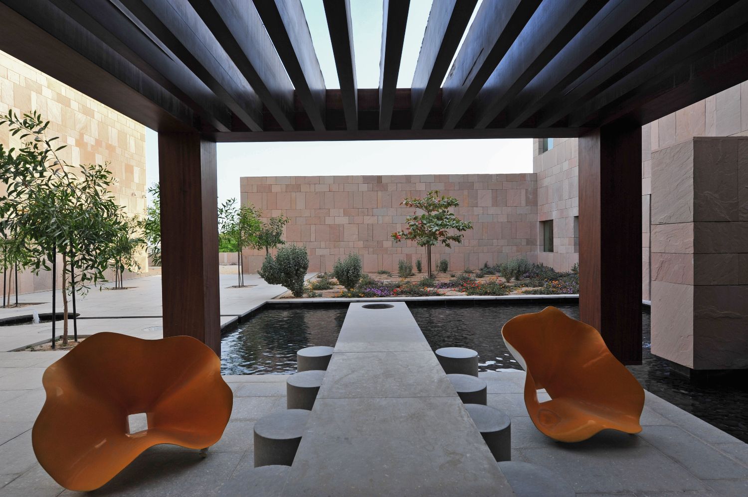 La Escuela de Diplomacia “Edmund A. Walsh”, de la Universidad de Georgetown en Qatar, se integra en el lado Norte de la UHBK (Universidad Hamad Bin Khalifa). El edificio adyacente al Oeste es la biblioteca central, y al Suroeste está el Centro Estudiantil, que tambié fue diseñado por LEGORRETA®. En el Sur está ubicada la “ruina de la herencia” y un parque con una fuerte conexión visual y conceptual lograda a través del diseño del paisaje y la orientación del edificio. El principio de diseño consiste en romper con la construcción monumental para ir hacia una escala más humana, logrando una atmósfera más hogareña en la que los estudiantes se sientan cómodos. El edificio es una composición de varios departamentos pequeños para dar la sensación de estar en casa. Todas las partes del edificio están conectadas con las áreas comunes, que son la base de La Escuela de Diplomacia. La entrada se conecta con la “Green Spine” del trazo del campus hacia el Sur por una agradable zona peatonal con esculturas a lo largo del camino. Los patios ajardinados y los espacios de los atrios entremezclados a través del complejo del edificio crean un relajado ambiente, promoviendo así una sensación de intimidad y ofreciendo tranquilidad a la agitada vida universitaria. Se puso especial atención al ambiente al aire libre. Las características del agua restauran y ventilan los espacios alrededor de ellos. Un jardín de cactáceas se sitúa a lo largo de la fachada norte y marca la transición entre el desierto y las áreas formalmente diseñadas y los patios facilitan funciones adyacentes y se convierten en agradables zonas de transición.