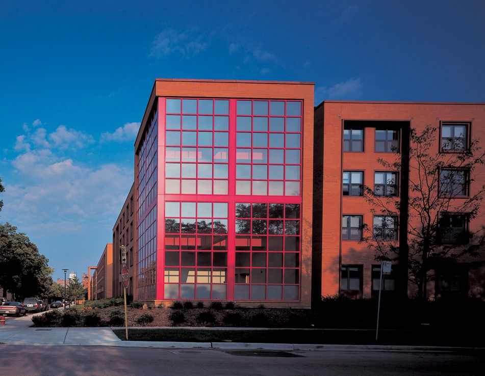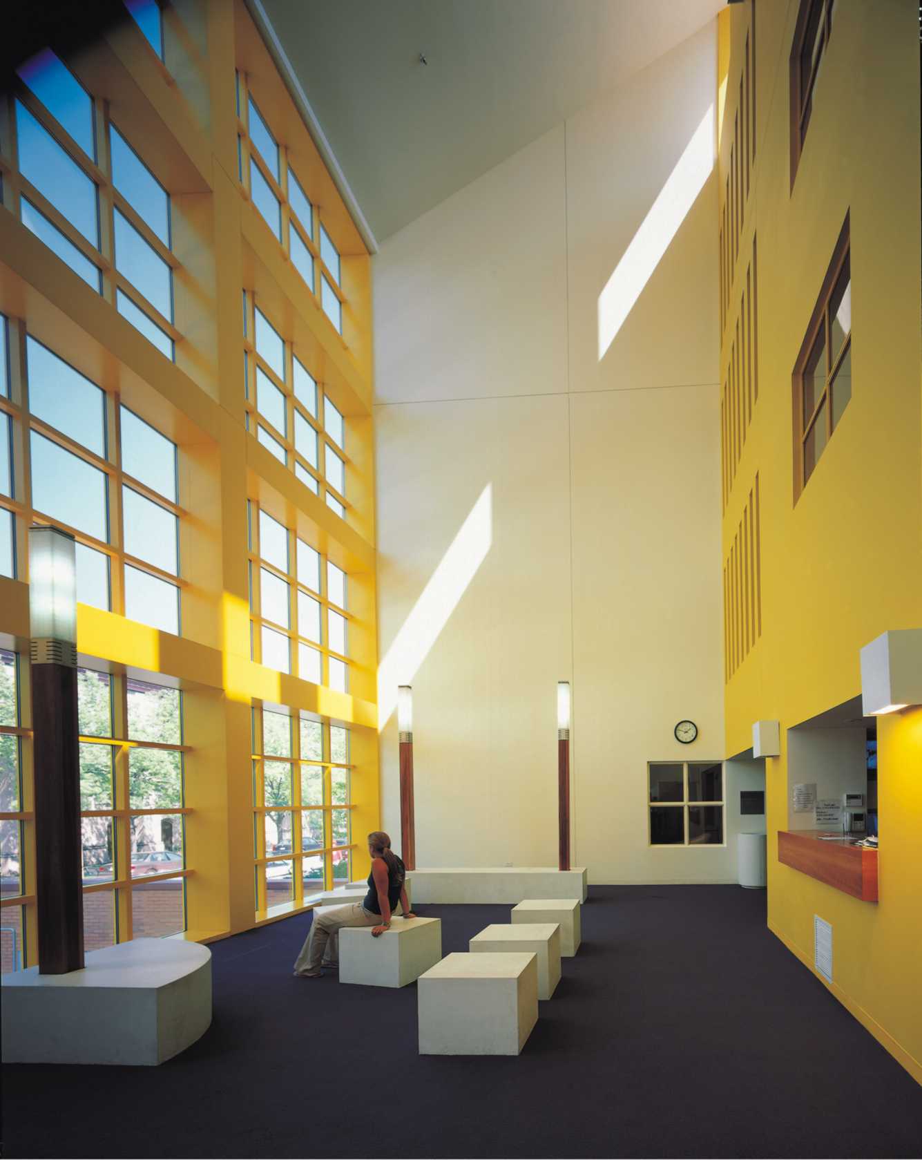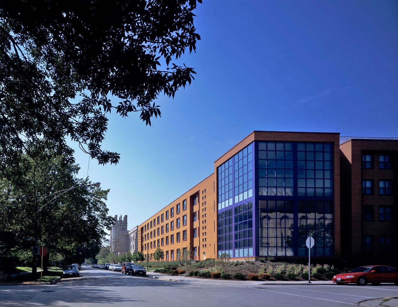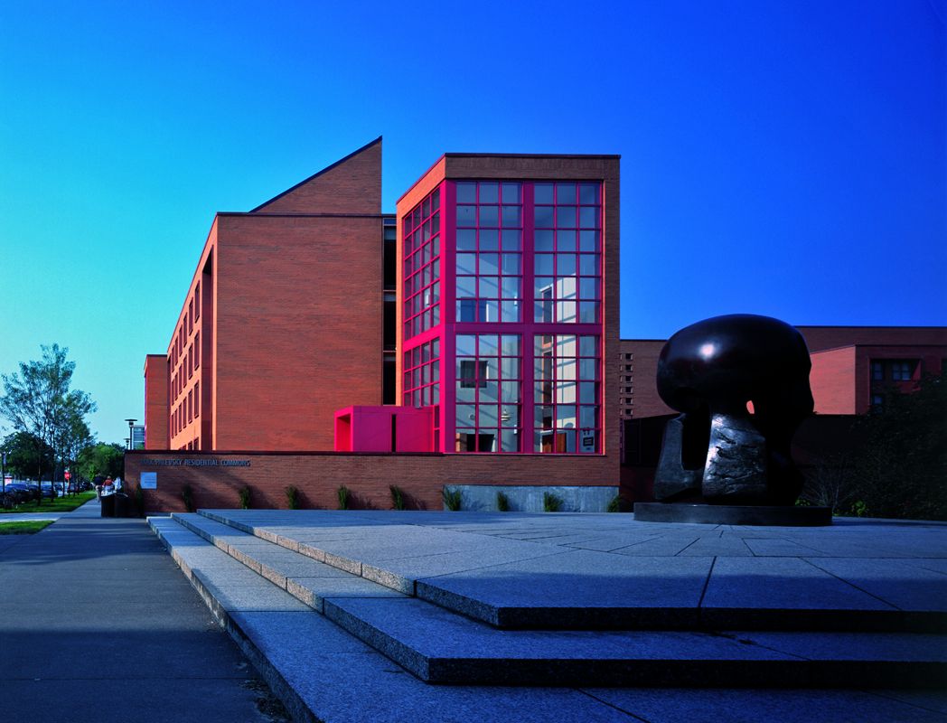 Es un conjunto de edificios fuertemente relacionados a la escala y los materiales de los antiguos edificios góticos en los alrededores, pero al mismo tiempo, se buscó una solución contemporánea. El reto era urbano y arquitectónico. El resultado es una serie de espacios abiertos con diferentes escalas, que atraen la atención hacia el campus y que dan un carácter diferente a las salas residenciales. El programa se distribuye en tres edificios principales, cada uno con una personalidad diferente. El que está en la esquina del noroeste tiene un atrio cerrado, donde hemos colocado los espacios públicos principales. El segundo gran, contrasta con los distintos volúmenes de la biblioteca existente, que tienen su entrada principal de responder al eje de la calle. El tercero, en el lado este del bloque, se coloca alrededor del jardín principal. Se estudiaron las entradas de acuerdo a la circulación de peatones reales en el campus, y en relación a los futuros edificios del campus.