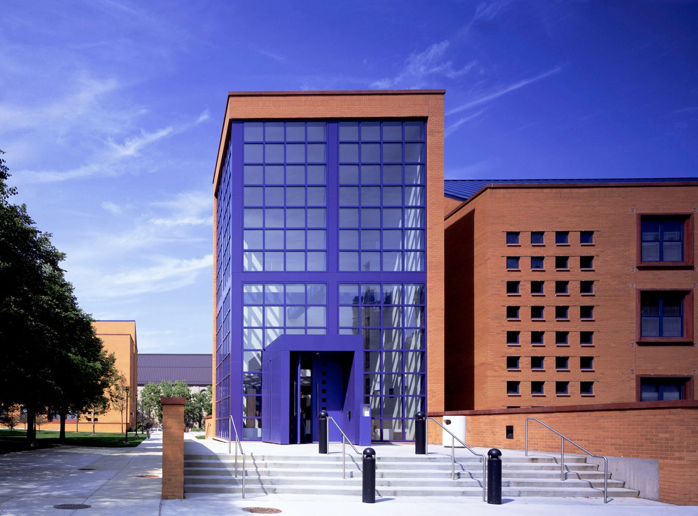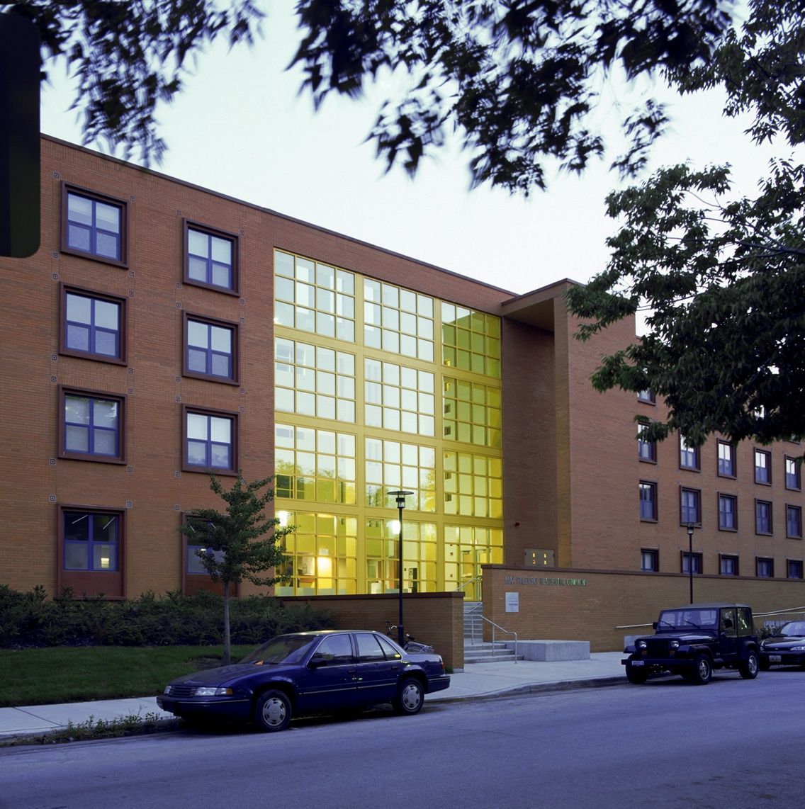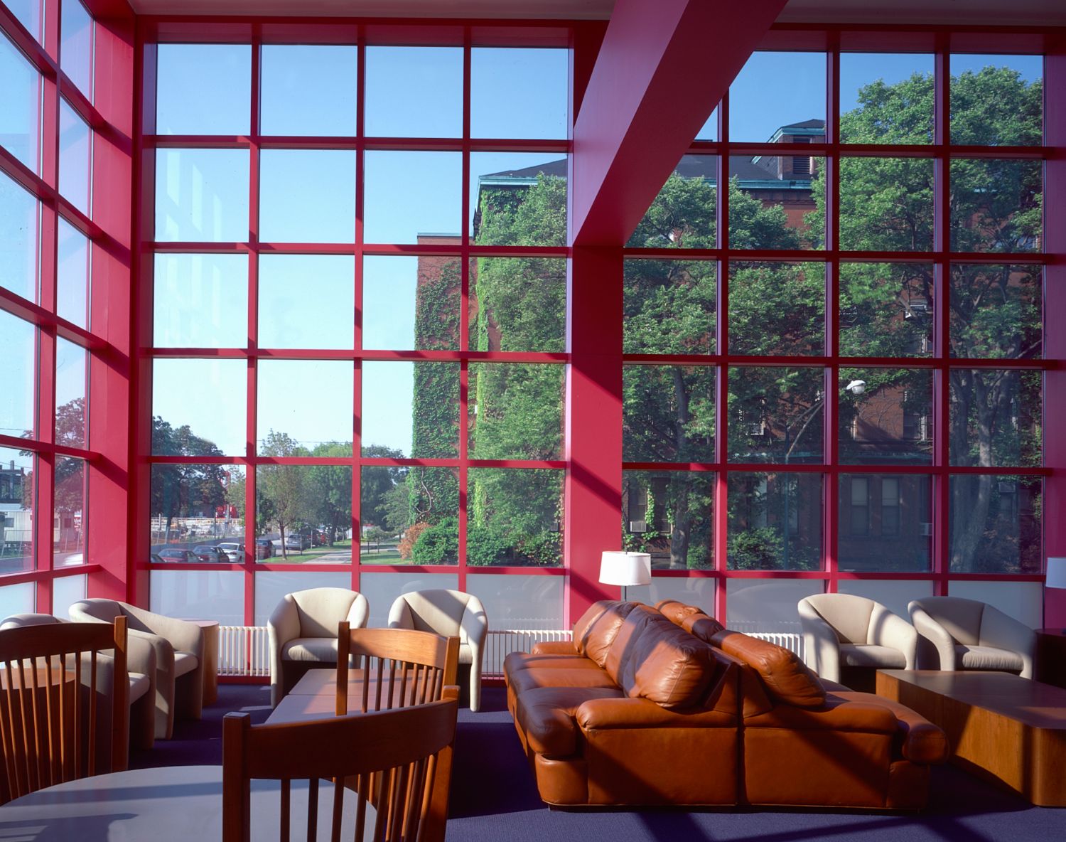Es un conjunto de edificios fuertemente relacionados a la escala y los materiales de los antiguos edificios góticos en los alrededores, pero al mismo tiempo, se buscó una solución contemporánea. El reto era urbano y arquitectónico. El resultado es una serie de espacios abiertos con diferentes escalas, que atraen la atención hacia el campus y que dan un carácter diferente a las salas residenciales. El programa se distribuye en tres edificios principales, cada uno con una personalidad diferente. El que está en la esquina del noroeste tiene un atrio cerrado, donde hemos colocado los espacios públicos principales. El segundo gran, contrasta con los distintos volúmenes de la biblioteca existente, que tienen su entrada principal de responder al eje de la calle. El tercero, en el lado este del bloque, se coloca alrededor del jardín principal. Se estudiaron las entradas de acuerdo a la circulación de peatones reales en el campus, y en relación a los futuros edificios del campus.
