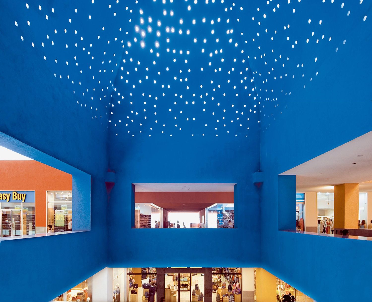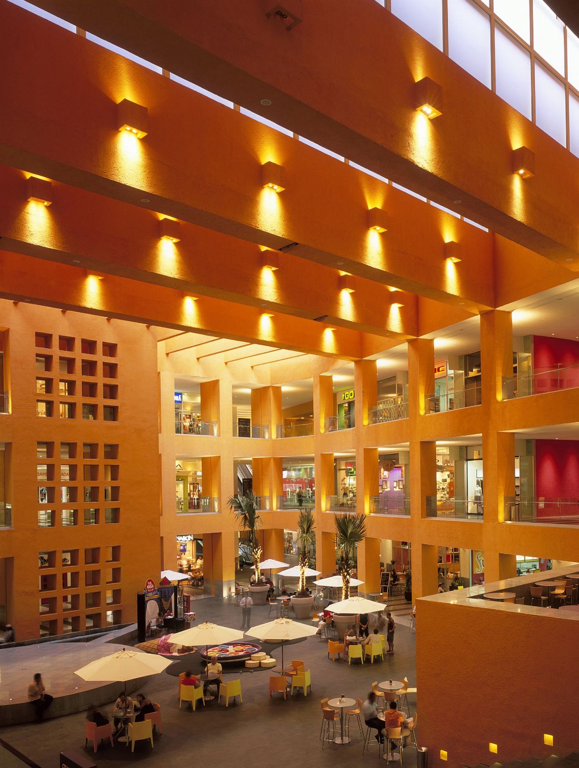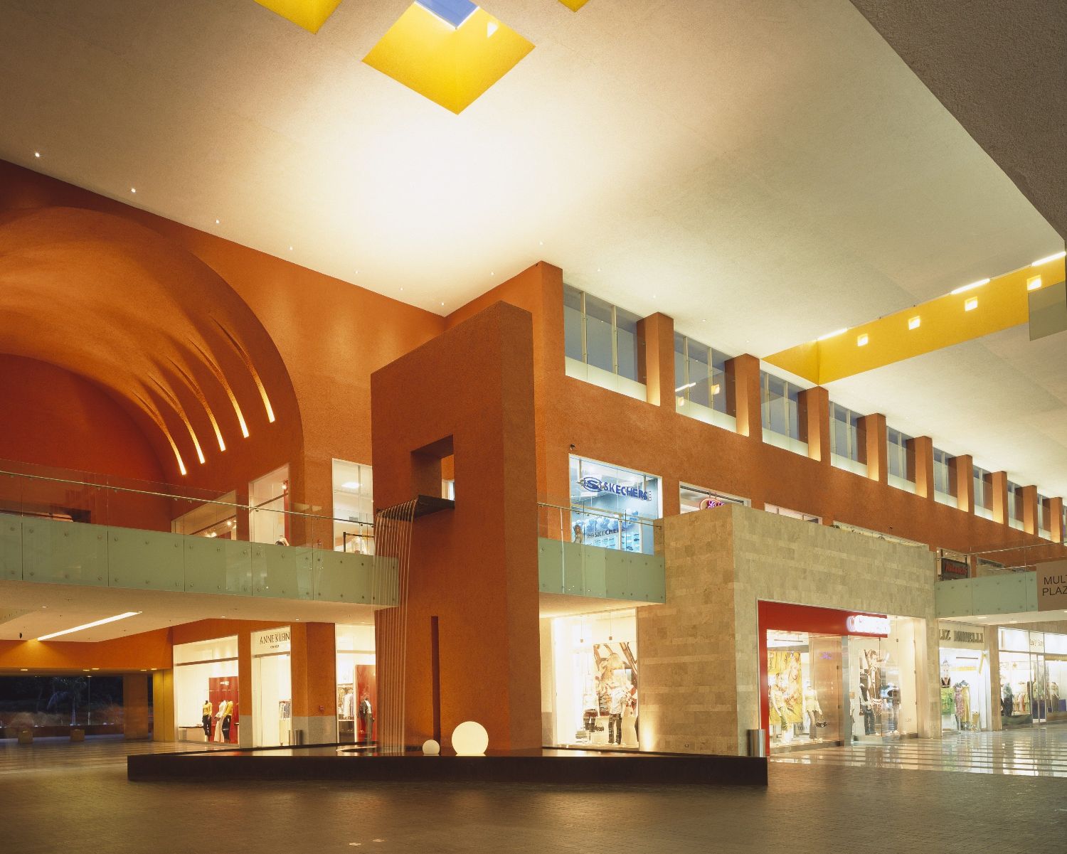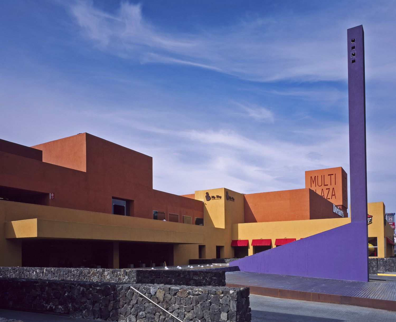 El Centro Comercial Multiplaza es la primera fase de un desarrollo multi-funcional en la ciudad de San Salvador en donde se combinan áreas destinadas a comercio, entretenimiento y servicios. Busca un carácter que se identifique con la gente, respetando su identidad alejada del concepto del “Mall”. Por otra parte, este proyecto representa un detonante del desarrollo urbano y comercial de la zona. Está ubicado en la periferia de la ciudad de San Salvador y se espera que tenga un impacto a nivel nacional y regional. Tanto en el exterior como en su interior, el conjunto ofrece distintas experiencias espaciales. La lectura de éste es la de un solo edificio cuyos elementos componen un “todo” que aloja muchas identidades independientes. Un monumental cuerpo central es el cuerpo más alto del complejo y está revestido por una doble piel; una celosía de concreto aparente que envuelve un volumen de color rosa intenso. Este elemento funciona como una lámpara urbana por las noches y se reconoce como el elemento de identidad del conjunto contrastando con los cuerpos a su alrededor en colores amarillo y naranja, acompañado de algunos acentos de color rojo quemado y morado. Alrededor de este núcleo se desarrolla la vida interna del conjunto. Desde los distintos accesos y hacia el perímetro de este cuerpo se forman diferentes plazas y “calles” que forman un circuito en el que cada intersección ocurre en un recinto siempre diferente en geometría, color y presencia de elementos que identifican cada plaza, creando una pausa en el recorrido y un punto de encuentro que a la vez sirven de antesalas para las tiendas anclas. Estas plazas, a veces circulares a veces ortogonales, con cascadas o espejos de agua, con columnas de agua que caen desde la parte más alta y se pierden en el infinito, bóvedas monumentales con intencionadas entradas de luz natural, largos muros de cristal que agrupan varios comercios iluminando el recorrido como una gran lámpara y finalmente los acentos de iluminación minuciosamente estudiados, hacen de la visita a Multiplaza una experiencia donde el usuario disfrutará cada rincón y cada espacio desde que inicie el recorrido. Por otra parte, el complejo proporciona una completa autonomía de las áreas de servicio, mantiene abastos y maniobras aislados de zonas públicas en todo momento, jamás perturbando la experiencia del visitante. Finalmente las terrazas, una zona que vive hacia el exterior con cierta independencia, presentan una variedad de restaurantes y bares que disfrutan de un ambiente relajante e inmejorables vistas a los volcanes y su entorno. Presentándose en ambientes cerrados así como al aire libre, diferentes volúmenes ofrecen una oportunidad para reunir distintos conceptos en una misma zona sin negarles una identidad propia.