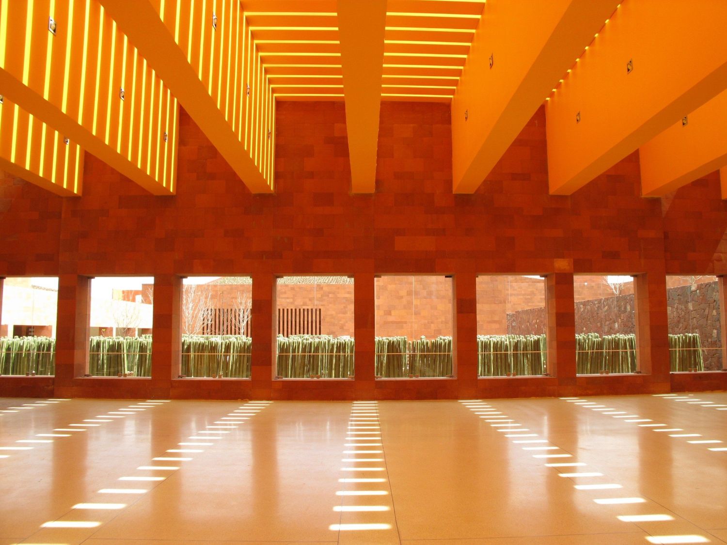 A través de un monumental patio repleto de exuberante vegetación, los visitantes al recinto son distribuidos a través de una compleja relación de pórticos que desembocan en un majestuoso patio central. En este espacio, la vegetación desértica compone un laberinto que genera diversos senderos llenos de misterio, amenizando la visita del visitante mientras navegan a través de los diferentes patios, terrazas y salas interactivas. Al tener cada una de éstas formas y orientaciones diferentes, ofrecen su propia personalidad y ambiente. Con esto, el recorrido museográfico trasciende la experiencia tradicional y se convierte en una experiencia versátil y educativa con recursos interactivos. Un imponente torreón puntualiza el acceso, mientras funciona como un espacio distribuidor de circulaciones tanto al patio de los laberintos como al área de comida. Como pieza central del proyecto, se erige en el patio central una alta torre que, además de ofrecer vistas panorámicas al contexto y a la ciudad de San Luis Potosí, alberga un observatorio astronómico que ofrece al visitante la posibilidad de comprender más acerca del mundo que le rodea. La luz natural, los jardines y los espacios exteriores son elementos fundamentales del diseño, que fomentan una integración con el parque mediante actividades al aire libre como talleres en el auditorio descubierto. De esta manera se establece una relación indivisible entre arquitectura y medio natural. Mediante el recubrimiento de muros y el uso de pavimentos de piedra del estado de San Luis Potosí, se refuerza el sentido vernáculo del proyecto. Las azoteas han sido tratadas como jardines, utilizando una paleta vegetal regional con el objeto de establecer un fuerte vínculo con el medio natural. Así, con todas estas consideraciones, el diseño del museo da como resultado un edificio que pertenece a su entorno y a la cultura Potosina, sin modas ni estridencias.