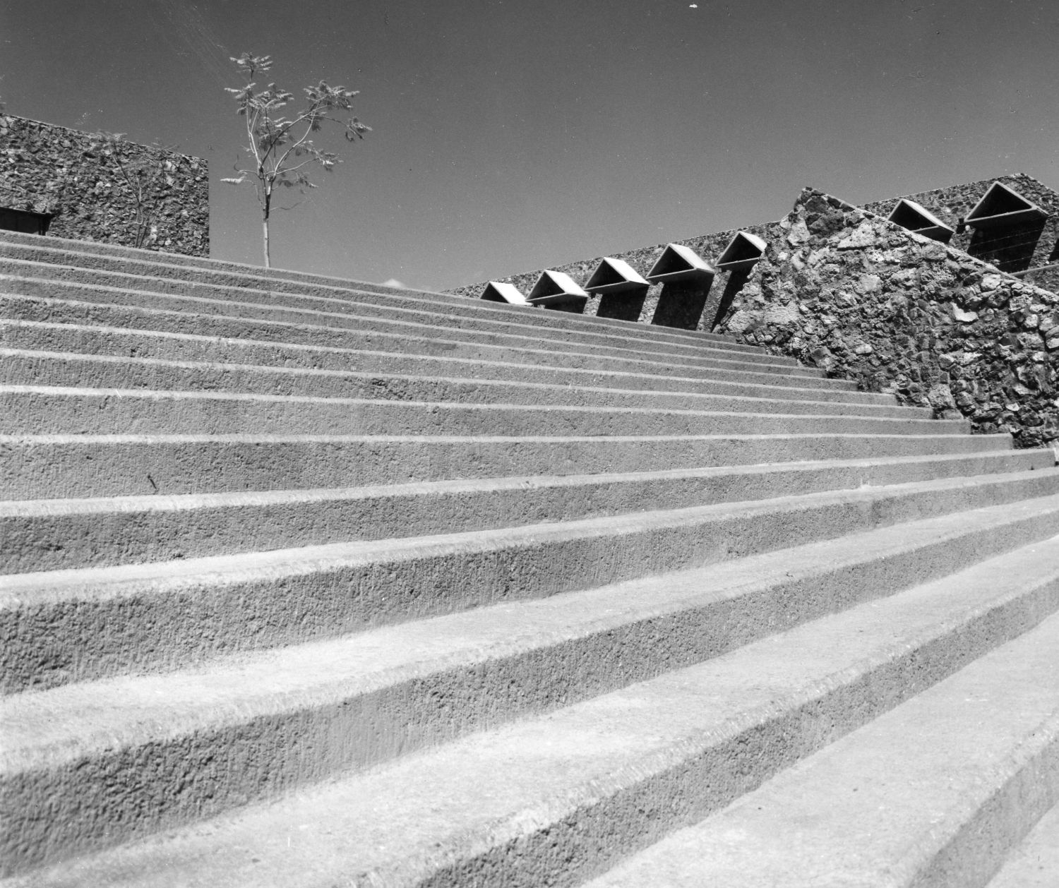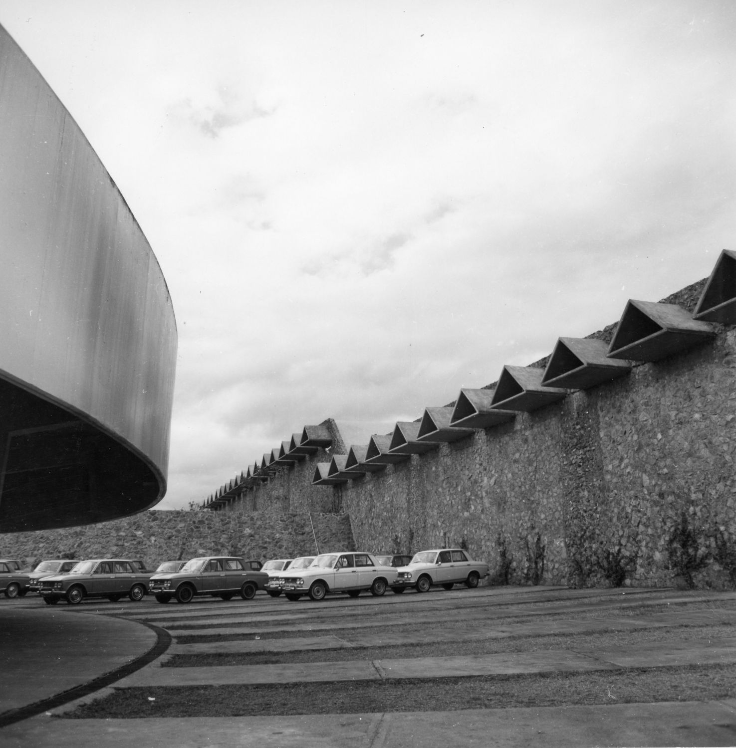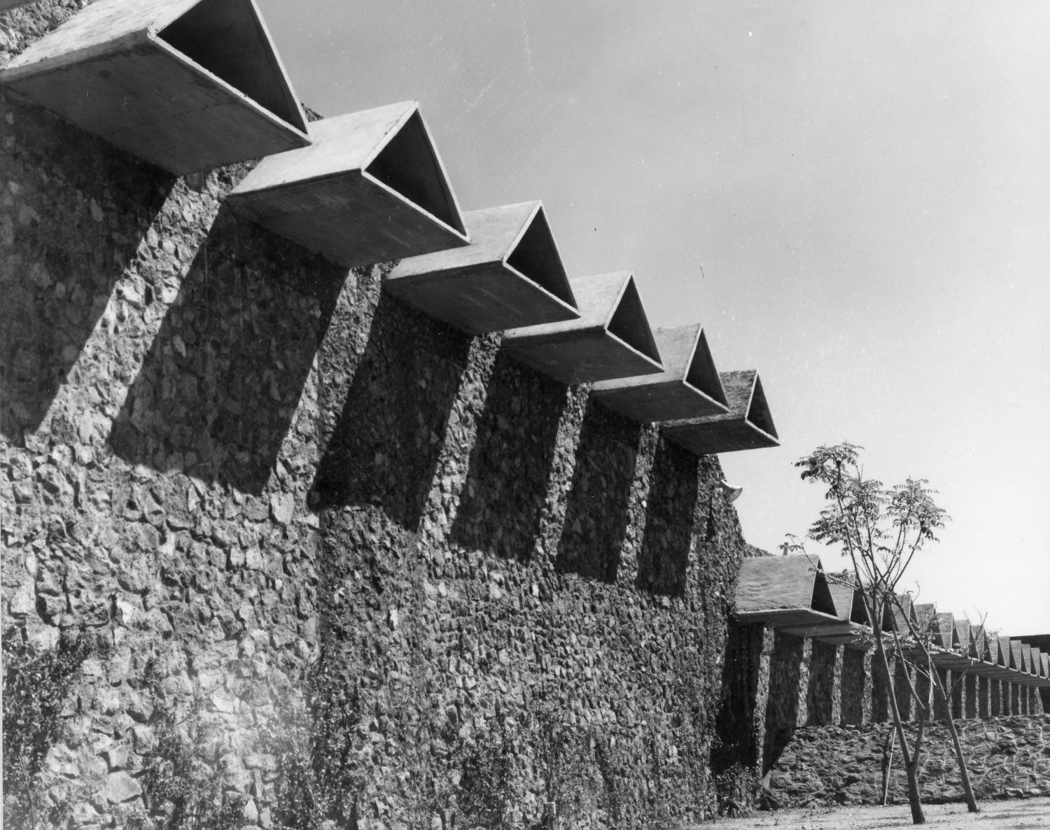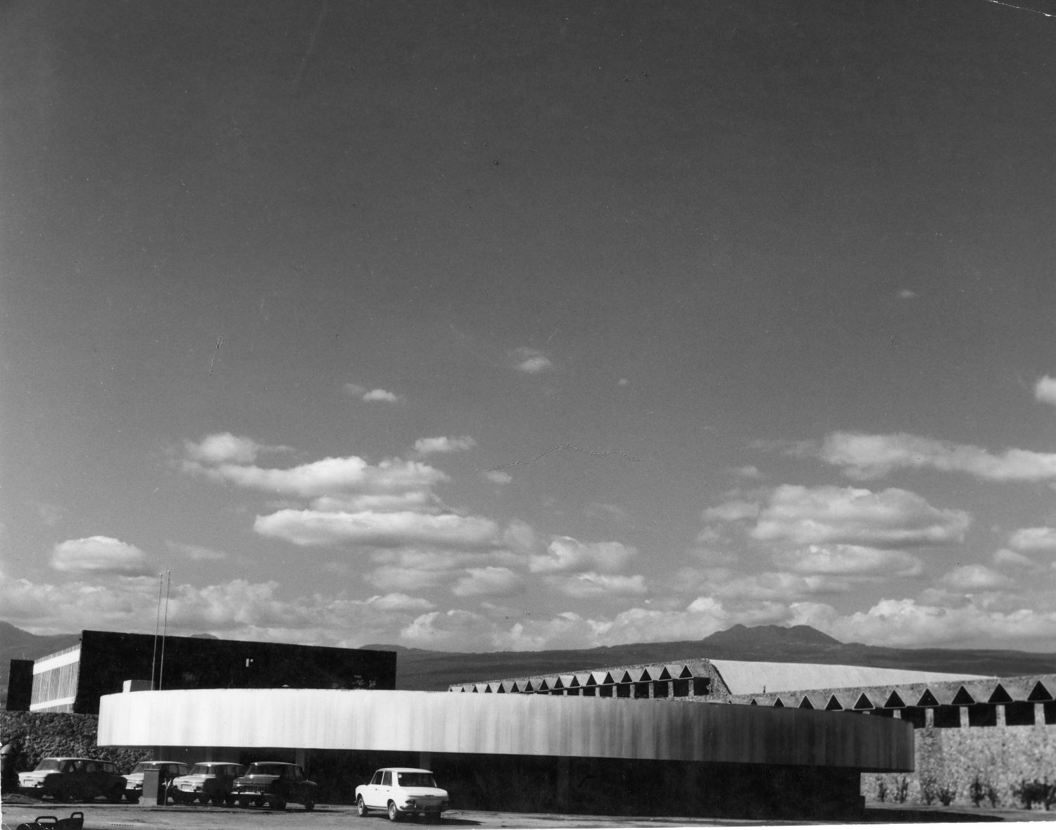 Dado que el terreno rocoso requería una nivelación, el proyecto aprovecha la piedra como material básico para los muros, con lo que se obtiene un precio más bajo en comparación con otros materiales. Las extensas superficies construidas resuelven todos los espacios y circulaciones propios de una industria y se delimitan volumétricamente a base de un juego de muros en diferentes niveles y orientaciones que contrastan con la celosía del edificio de Oficinas, y con la planta circular de la cafetería de los servicios. Del conjunto resulta un ambiente de austeridad y de trabajo, en ningún momento deprimente.