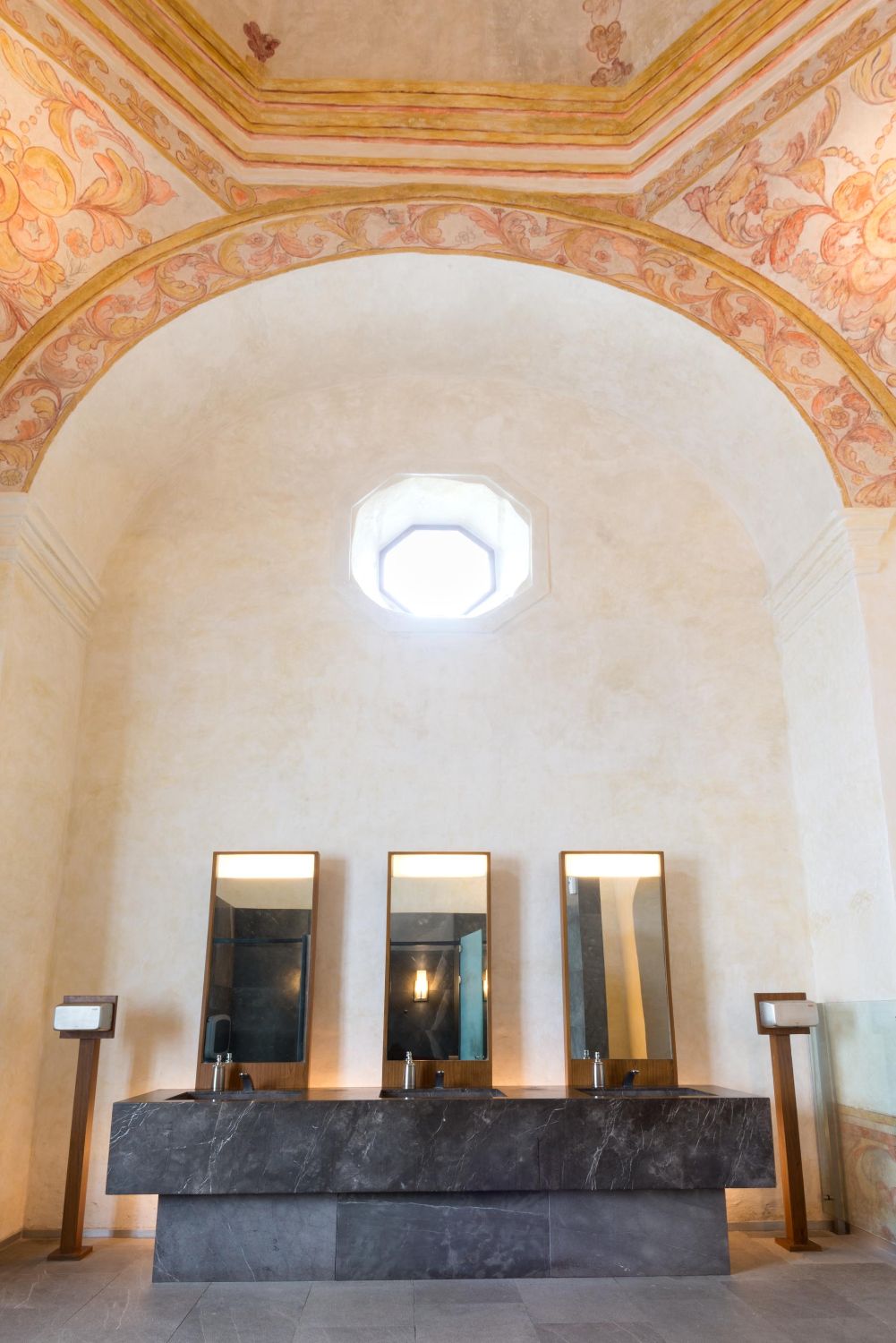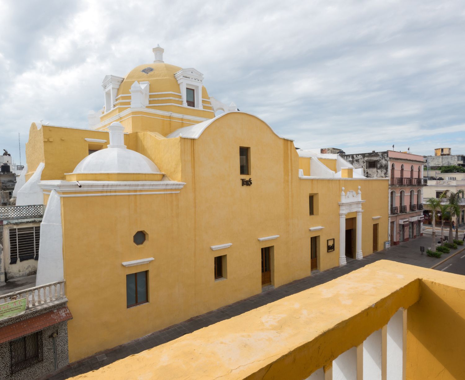 La edificación donde se desarrolla este proyecto está ubicada en el Centro Histórico de la Ciudad de Veracruz. El área se encuentra ocupada en su totalidad por la nave principal del templo que conformaba el Ex Convento de Santo Domingo, construcción que data del siglo XVII. Este Convento fue uno de los más antiguos que se estableció en Veracruz con la llegada de los Dominicos, su construcción inició en 1624 y concluyó en 1651. Posteriormente con las Leyes de Reforma promulgadas por el Presidente Benito Juárez, el conjunto fue vendido a particulares, y fue en 1857 cuando se fundó un almacén denominado “Casa Zaldo Hermanos”, que estuvo en operación por más de 40 años. En la primera década del Siglo XX, se construyó un edificio sobre su fachada principal y atrio, quedando sólo la fachada lateral desde donde se puede apreciar una cúpula de media naranja. Esta edificación posteriormente fue utilizada durante mucho tiempo como bodega y estacionamiento. Por esta razón se construyeron una serie de estructuras de concreto en prácticamente toda la periferia interior del edificio anexando columnas y trabes ancladas a la estructura original del Templo. El proceso para llevar a cabo la transformación de este edificio implicó la incorporación de un equipo de restauradores, cuyo trabajo de investigación en sitio aportó información valiosa para la toma de decisiones dentro del proceso de diseño del proyecto. También esto permitió el descubrimiento de elementos arquitectónicos, particularmente algunas ventanas en fachada, las cuales se encontraban ocultos o tapidos en su totalidad; así como varios elementos de pintura mural en los interiores, muy poco característicos en esta zona geográfica. Para llevar a cabo los trabajos de restauración, hubo una colaboración cercana con el Centro INAH de Veracruz, aportando una serie de requerimientos específicos para poder incorporar la infraestructura necesaria para su nueva función como restaurante, lo que llevó a idear algunas soluciones muy particulares como el desarrollo de una estructura cuya función es ser la circulación vertical para unir todos los niveles; o un relleno general en toda la planta general del restaurante para ahí sembrar todas las instalaciones necesarias como aire acondicionado, iluminación, instalación hidráulica, etc., con el fin de no perforar o modificar de manera permanente la estructura original del edificio. La selección de materiales empleados fue determinada por varios factores, donde se tomaron en cuenta las características climatológicas del lugar, su resistencia y uso para su función como restaurante, así como una correlación con los antecedentes históricos y uso primario del edificio. Para el área de todo el Piso de Ventas se usó un mármol Santo Tomás en dos acabados distintos, a manera de tapete y cenefas, retomando el uso de este material en edificaciones religiosas de la época distribuidas en la parte central del país; elementos de carpintería como puertas, ventanas, celosías y muebles en madera de teka, resistentes a las condiciones de Veracruz, con un diseño más contemporáneo, pero al mismo tiempo respetuoso del edificio, al no contar con ningún antecedente histórico de su forma y diseño original. El aplanado en muros interiores se hizo con un acabado enlucido; y en muros exteriores se hizo la pintura a la cal apagada en un color cálido, seleccionado y aprobado dentro de los requerimientos del INAH. Para el restaurante se conservaron algunas de las estructuras de concreto, con el objetivo de reutilizarlas como complemento de las zonas de servicio ubicadas en planta baja; las estructuras encontradas en la nave principal se demolieron, y es ahí donde se ubica la zona del Piso de Ventas. El proyecto consiste en un restaurante y todas las áreas de servicios distribuidas en 2 niveles principales. En Planta Baja se encuentra el Piso de Ventas que incluye el acceso y vestíbulo del restaurante, así como las zonas que ocupan las mesas, sillas, gabinetes y estaciones de servicio del restaurante. En esta planta se encuentran también todas las áreas de servicio, a las que se accede directamente de la calle, así como la cocina, que cuenta con conexión directa hacia el Piso de Ventas.